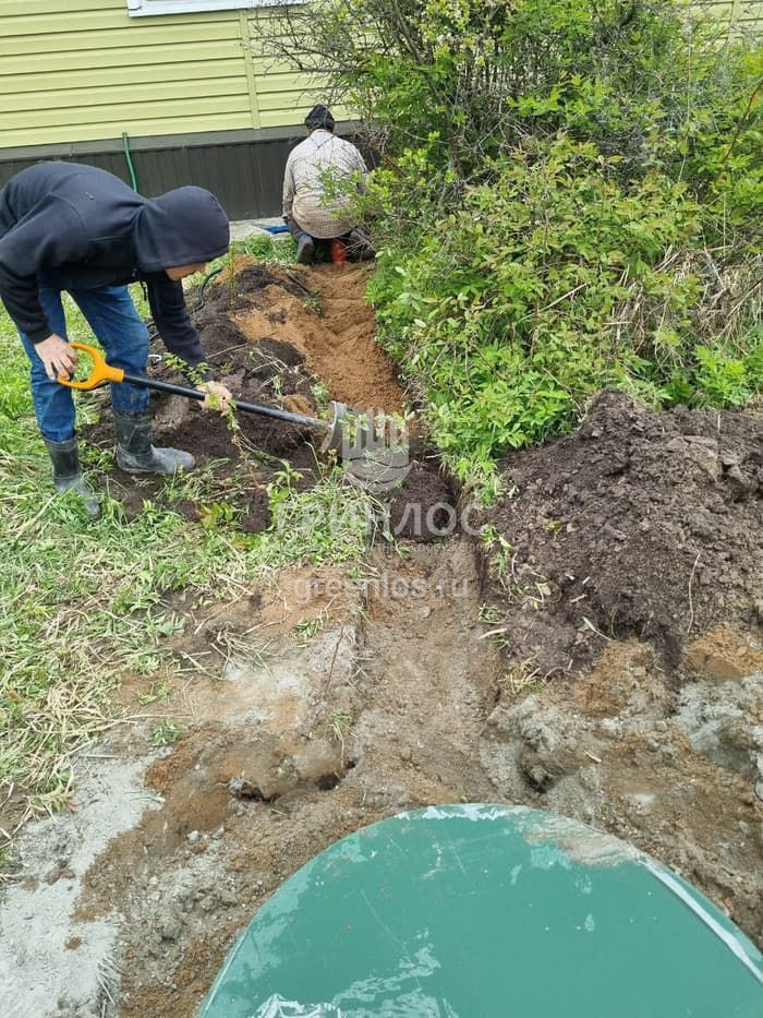 доставка, монтаж и пуско-наладочные работы, а также подготовительные работы – сделан подкоп под метровой отмосткой для ввода коммуникаций в дом. Станция предназначена для использования летом, подобрана под высокий уровень грунтовых вод. Проведена дополнительная расчистка площадки для котлована и ттенге.