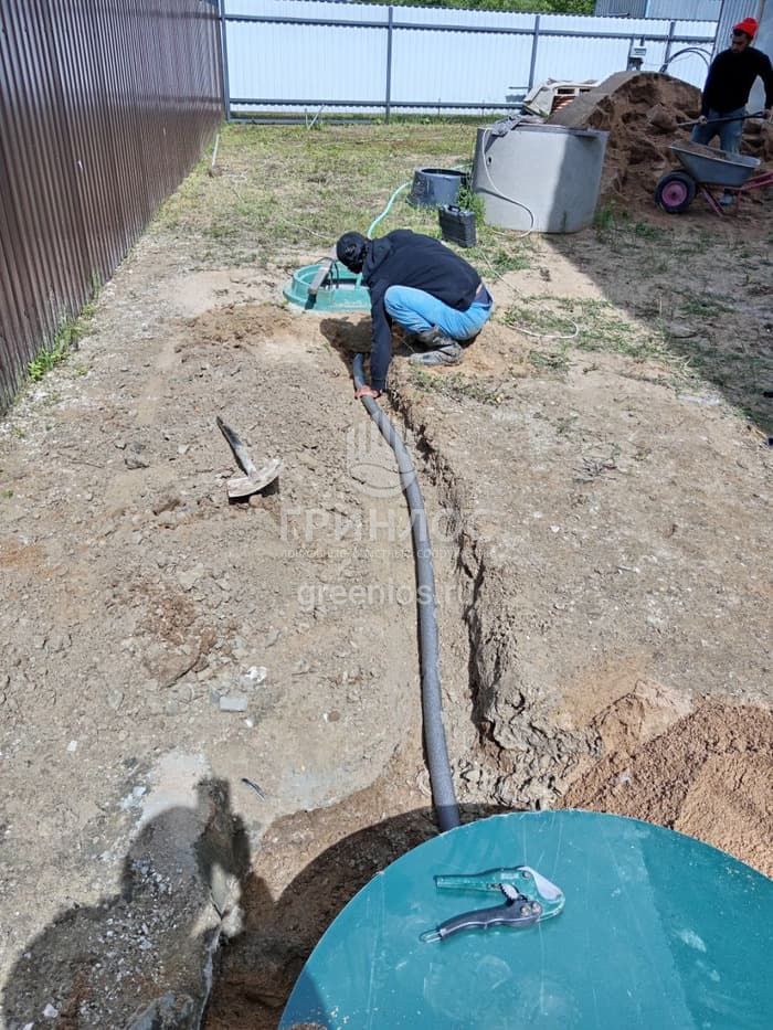 Доставка, монтаж, запуск станции, включая подготовку котлована и другие земляные работы. Станция рассчитана на 6 условных пользователей, модель с принудительным сбросом в дренажный колодец.