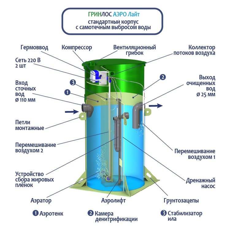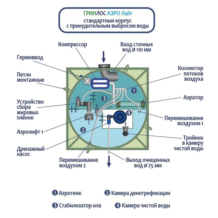 Принцип работы септиков ГРИНЛОС Аэро Лайт