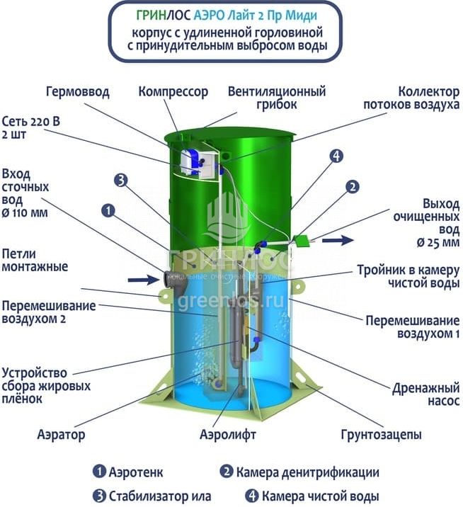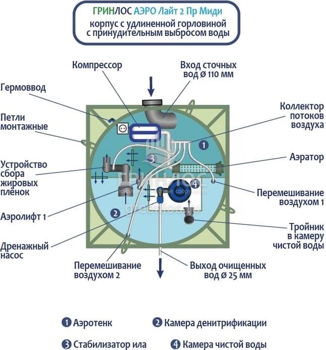 Модификации септика Гринлос Аэро Лайт 2 Пр Миди