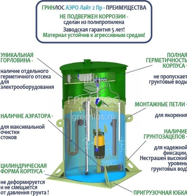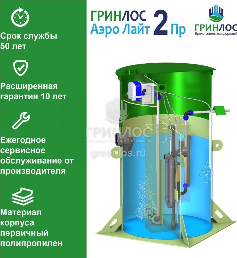 Отличительными особенностями септика Гринлос Аэро Лайт 2 Пр являются: