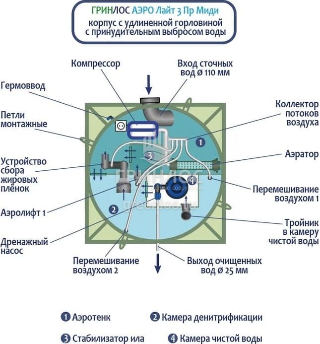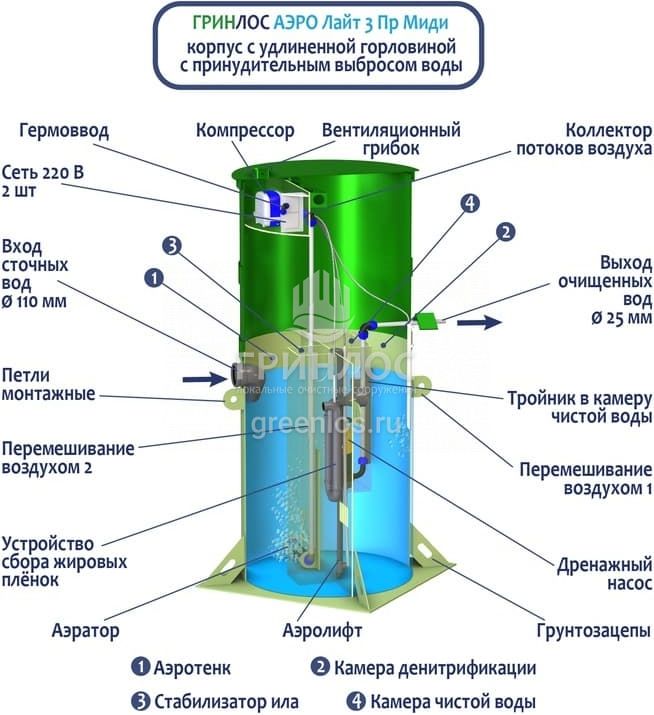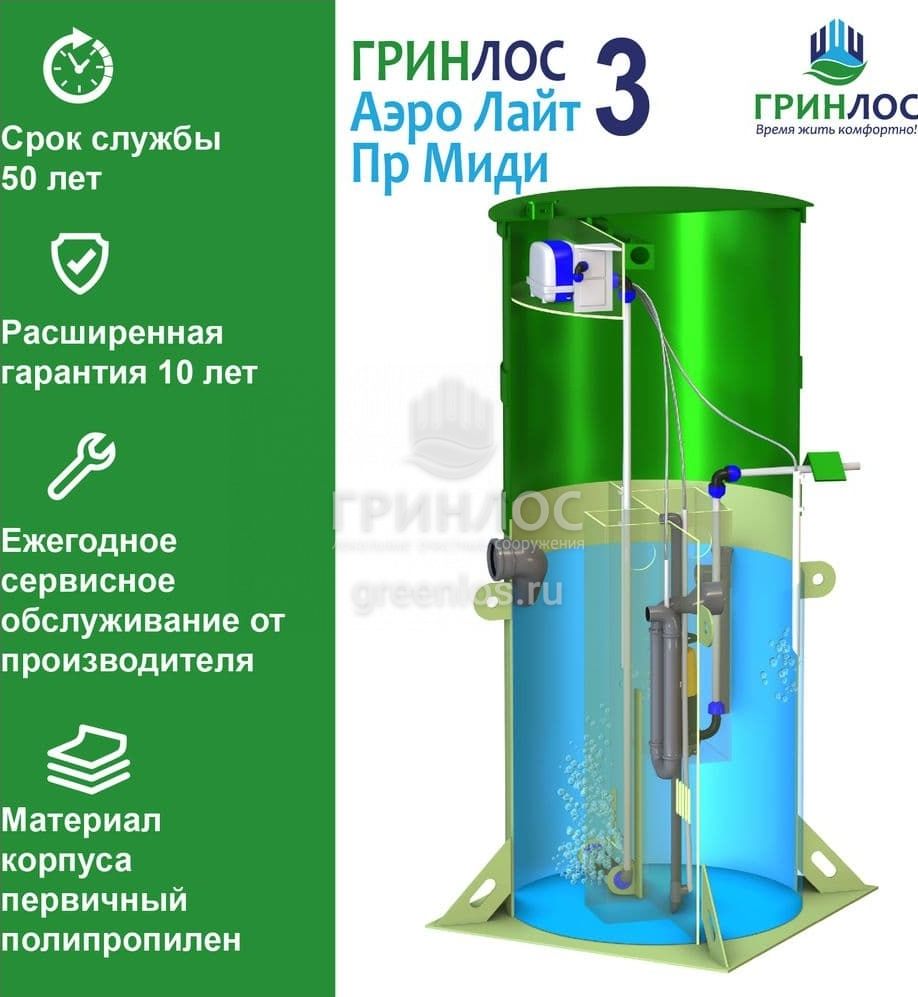 Модификации септика Гринлос Аэро Лайт 3 Пр Миди