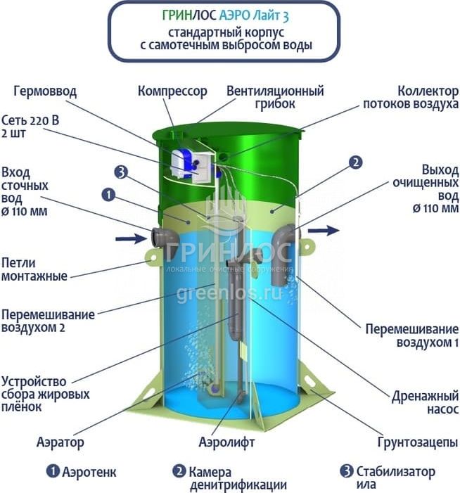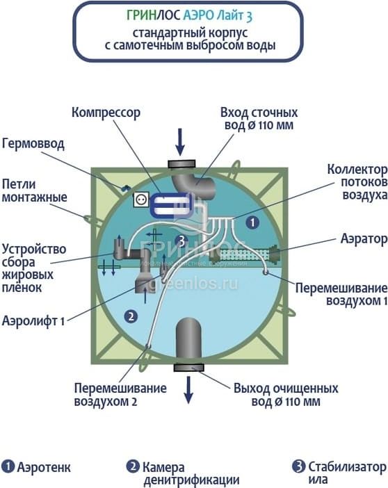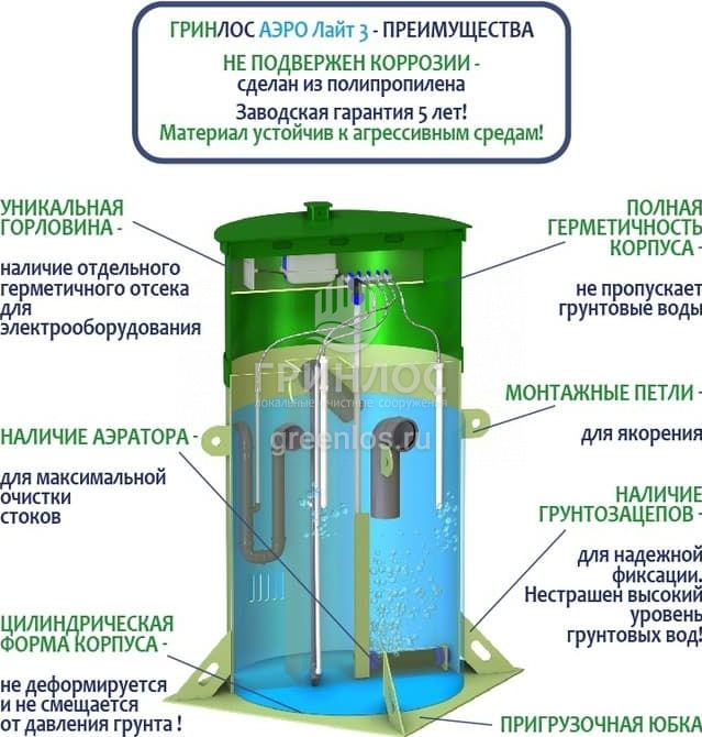 Отличительными особенностями септика Гринлос Аэро Лайт 3 являются:
