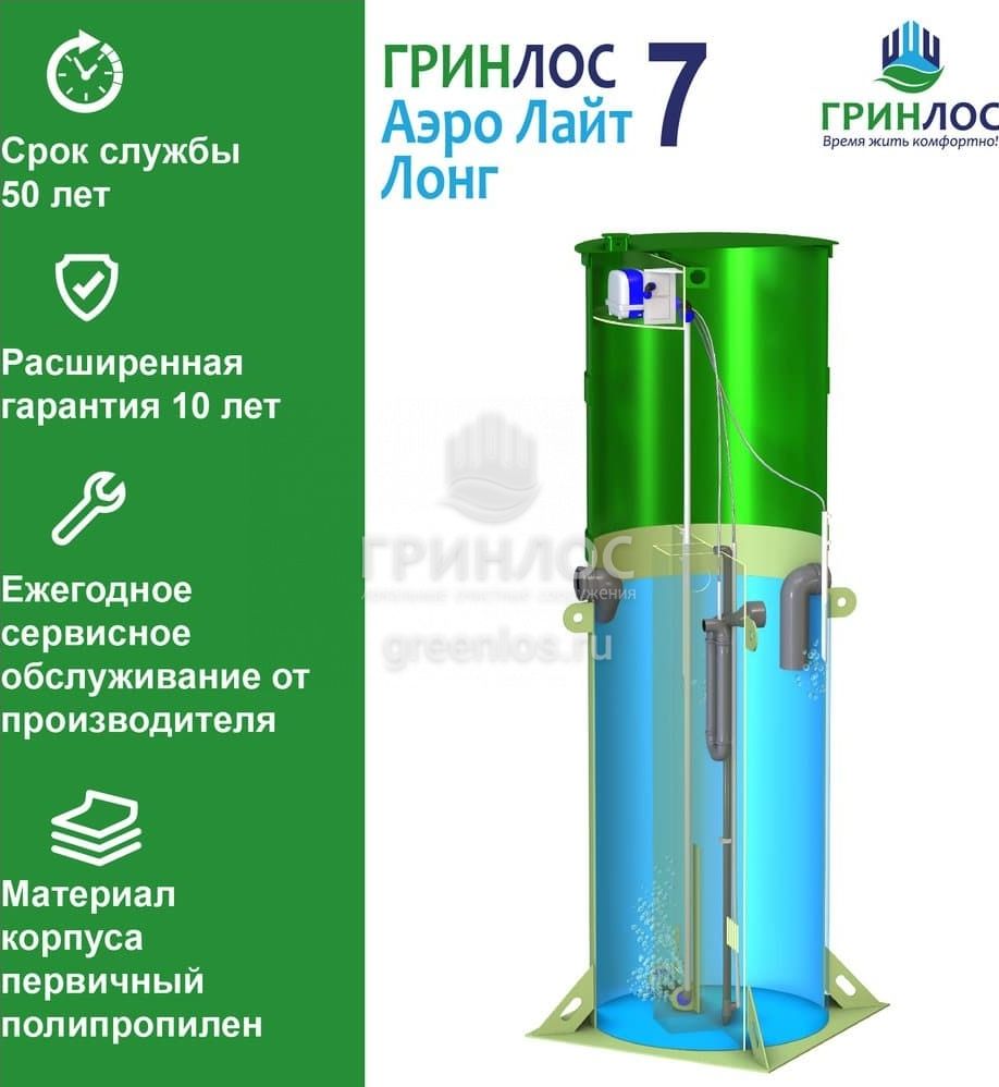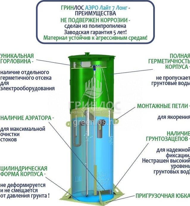Отличительными особенностями септика Гринлос Аэро Лайт 7 Лонг являются: