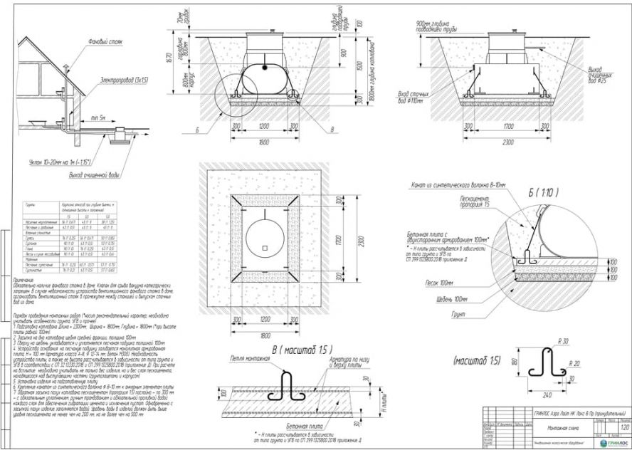 Рекомендуется поручить выбор и установку септика Гринлос Аэро Лайт Пр НК специализированной компании. Перед началом монтажа специалисты должны подготовить котлован, размеры которого определяются конструктивными особенностями выбранной модели. Эти параметры можно найти в приложении к проектной документации. Важно оставить свободное пространство не менее 250 мм между боковыми стенками корпуса и грунтом.