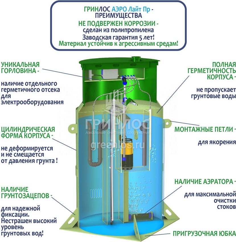 Отличительными особенностями септика Гринлос Аэро Лайт 8 ПР являются: