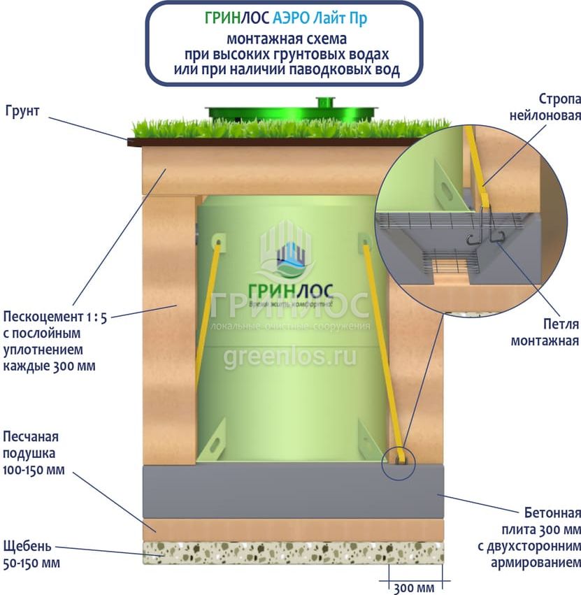 Станции очистки Гринлос Аэро Лайт 8 ПР обладают надежными грунтозацепами, действительно предотвращающими всплытие оборудования на обводненных участках.