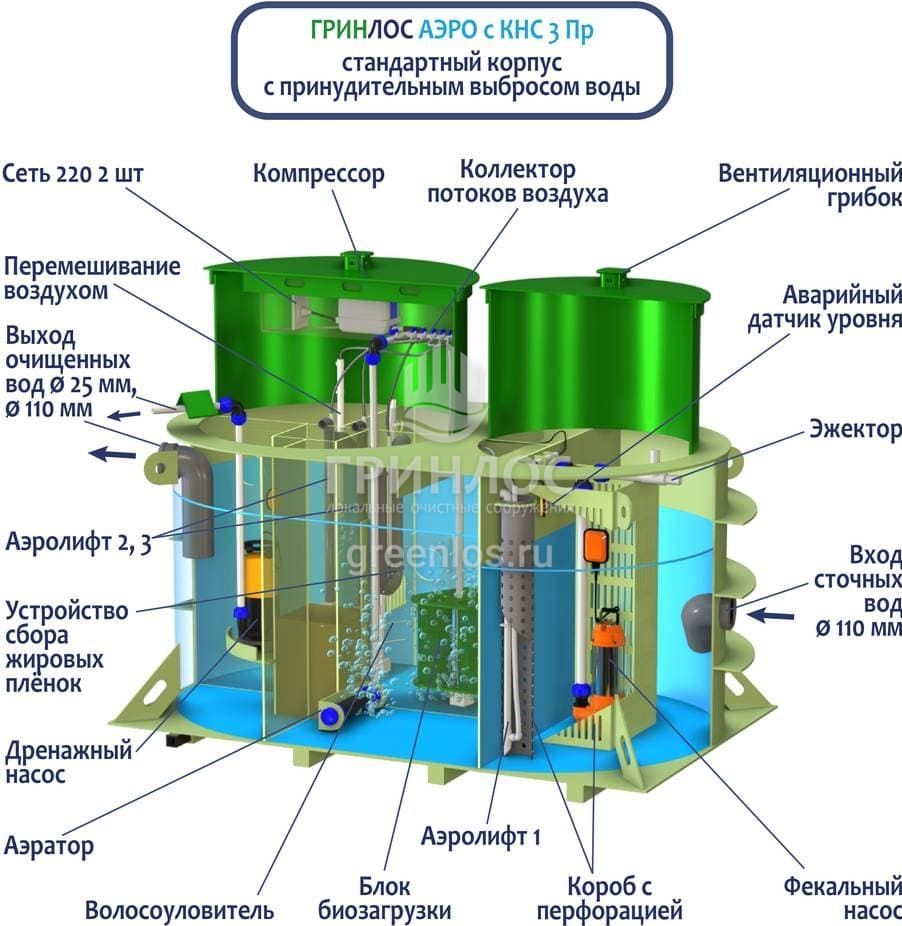 Модификации септика Гринлос Аэро с КНС 3 Пр