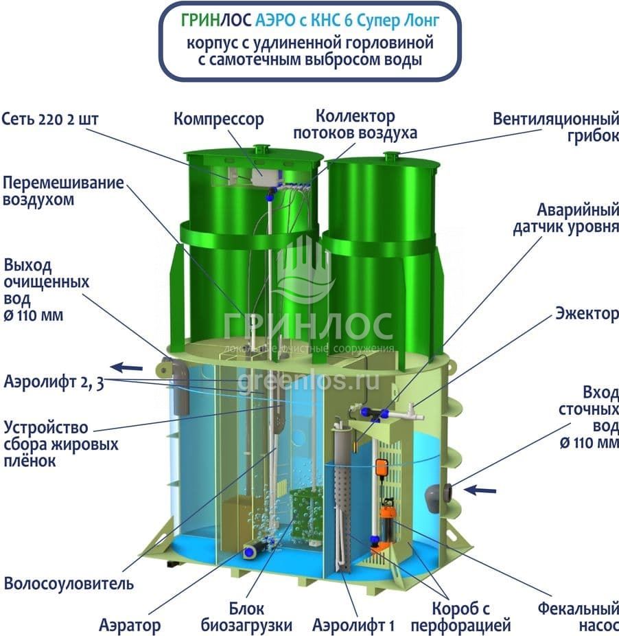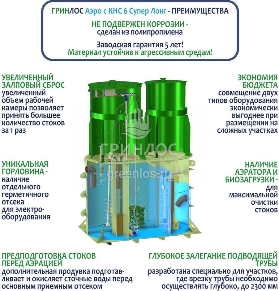 Модификации септика Гринлос Аэро с КНС 6 Супер Лонг