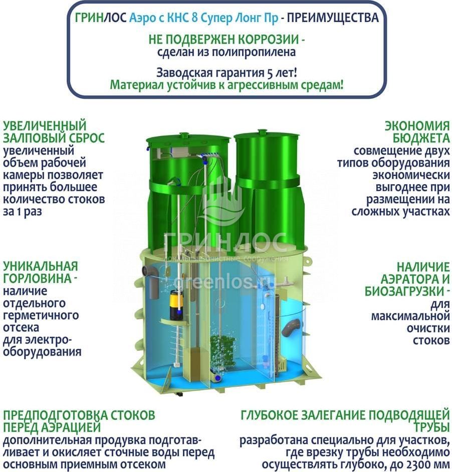 Модификации септика Гринлос Аэро с КНС 8 Пр Супер Лонг