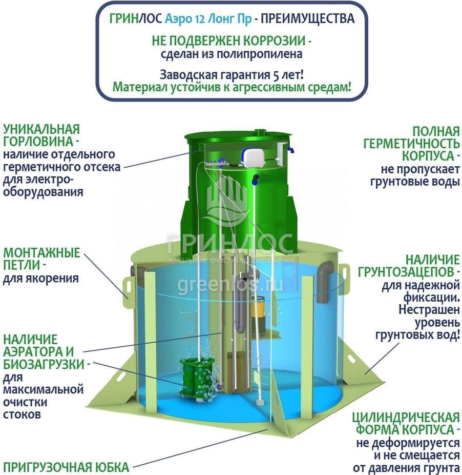 Модификации септика ГРИНЛОС Аэро 12 Пр Лонг