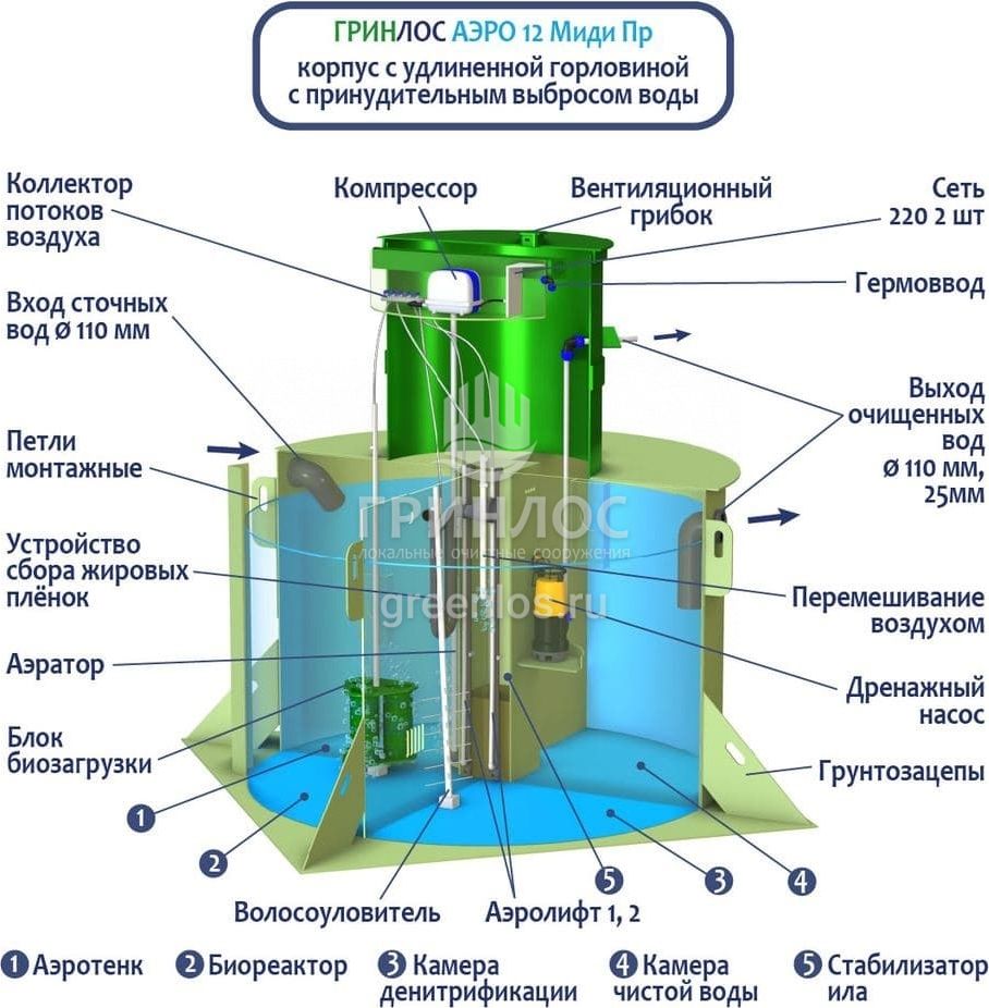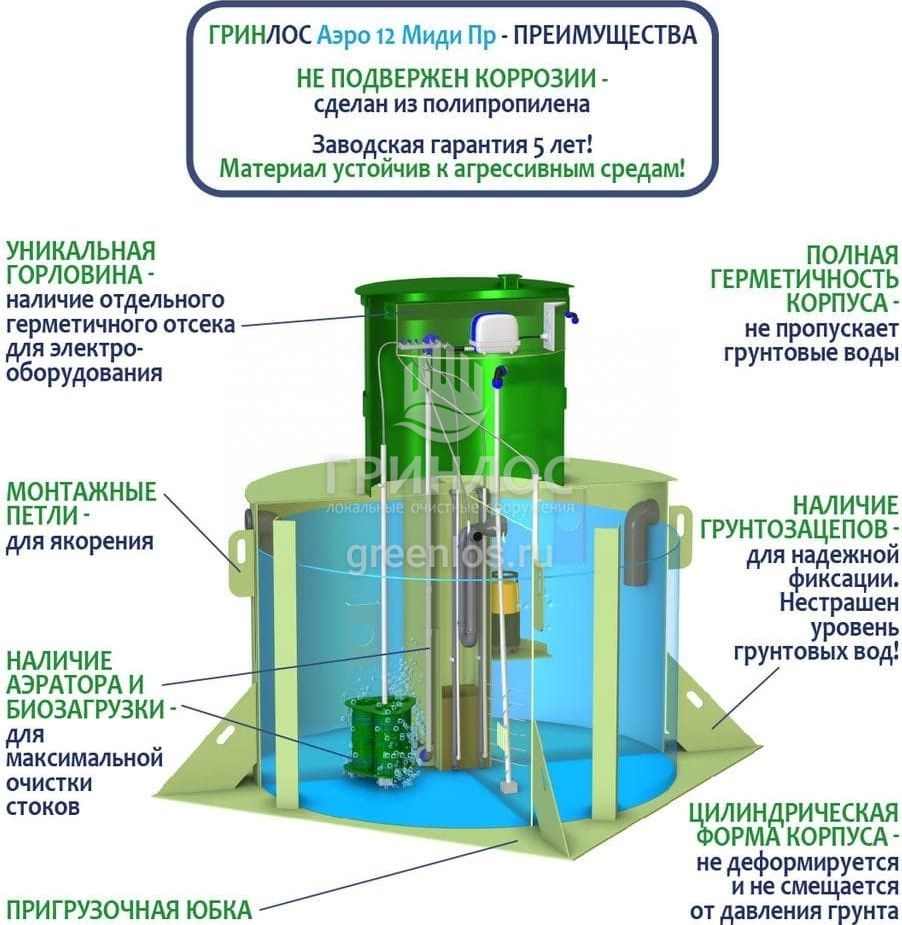 Модификации септика ГРИНЛОС Аэро 12 Пр Миди