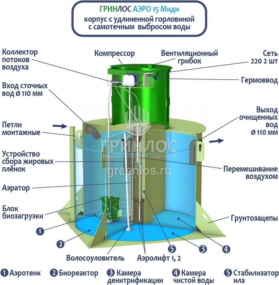 Модификации септика ГРИНЛОС Аэро 15 Миди