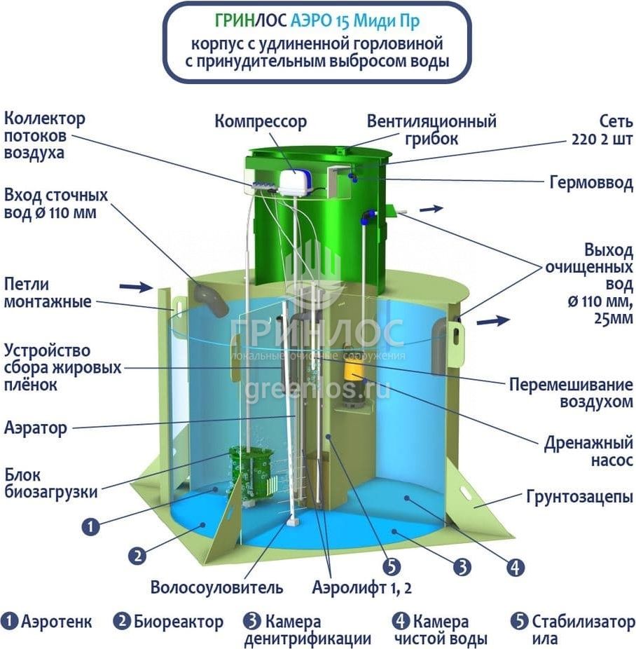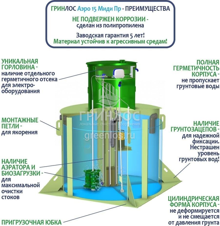 Модификации септика ГРИНЛОС Аэро 15 Пр Миди