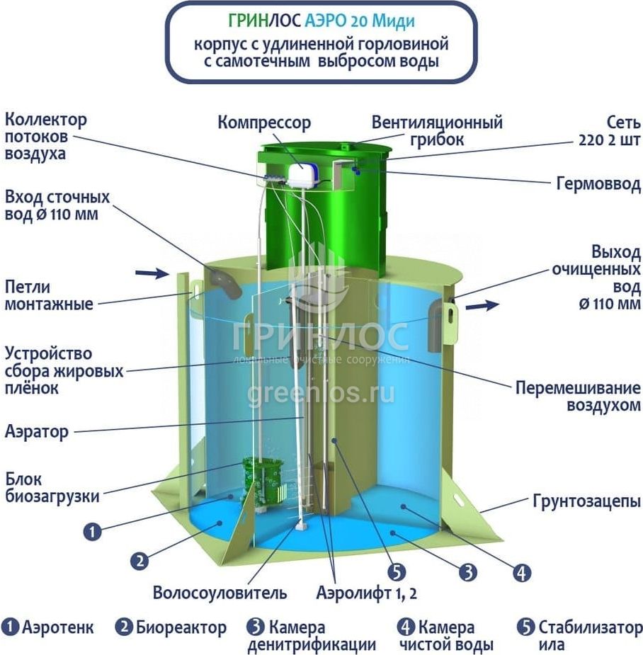 Модификации септика ГРИНЛОС Аэро 20 Миди