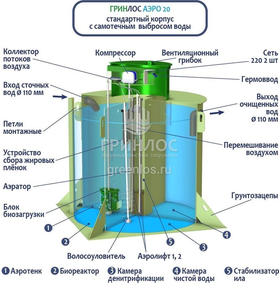 Отличительными особенностями септика ГРИНЛОС Аэро 20 являются: