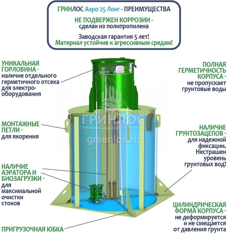 Модификации септика ГРИНЛОС Аэро 25 Лонг