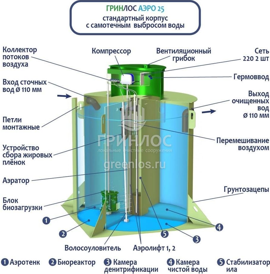 Отличительными особенностями септика ГРИНЛОС Аэро 25 являются:
