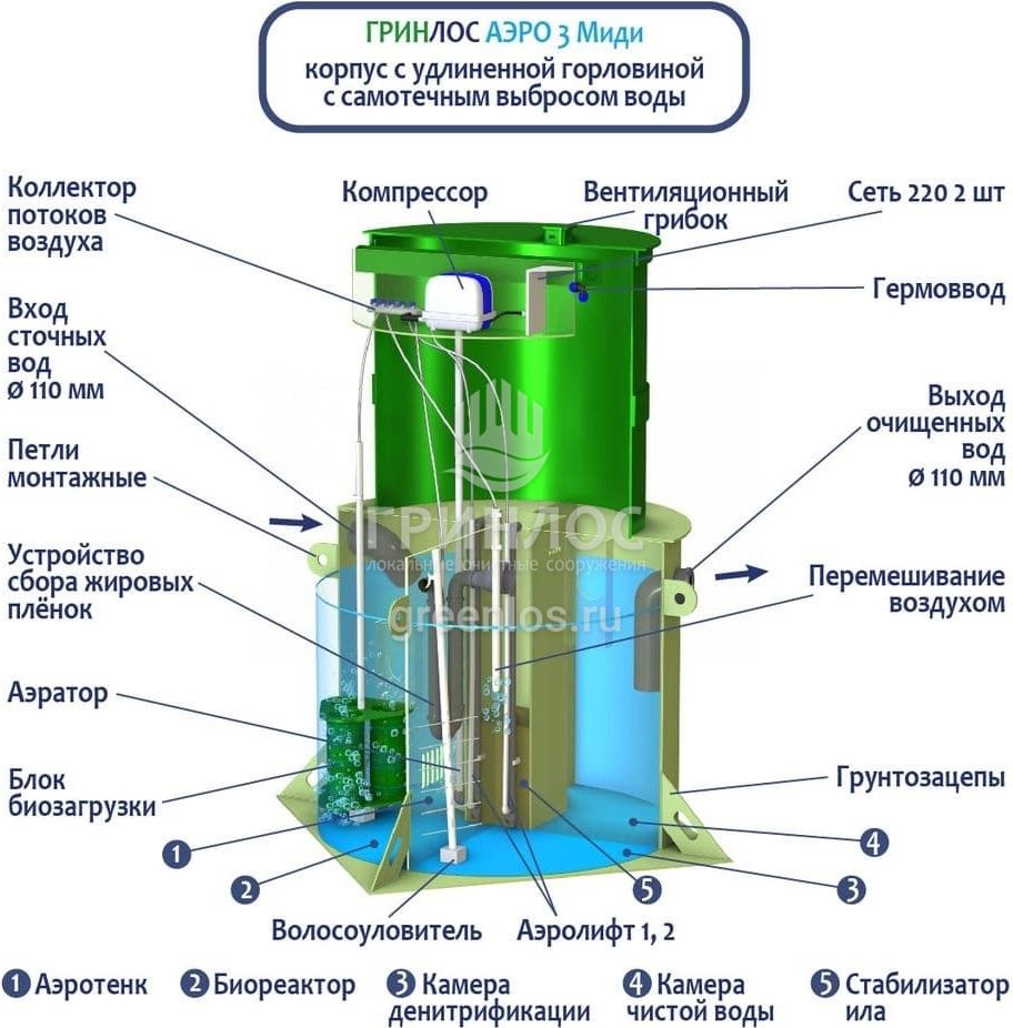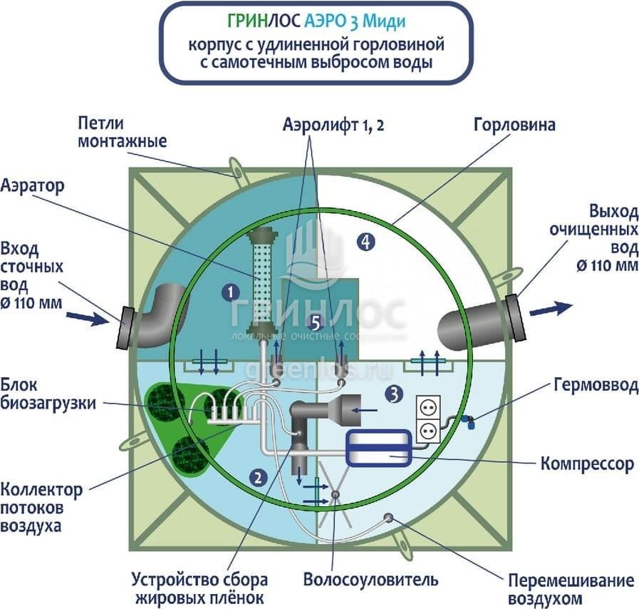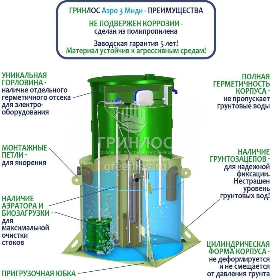Модификации септика ГРИНЛОС Аэро 3 Миди