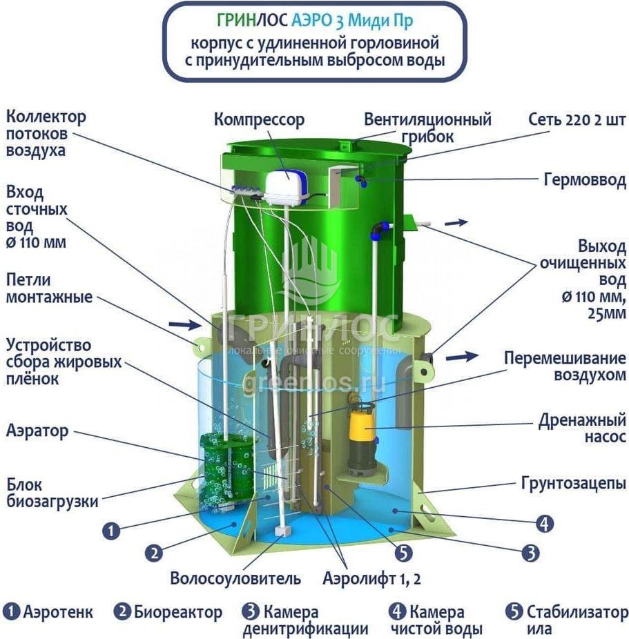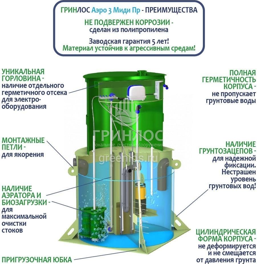 Модификации септика ГРИНЛОС Аэро 3 Пр Миди