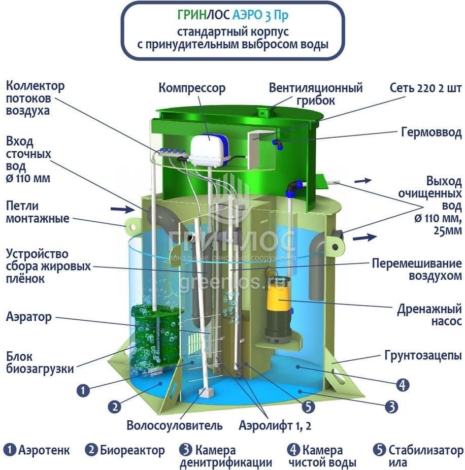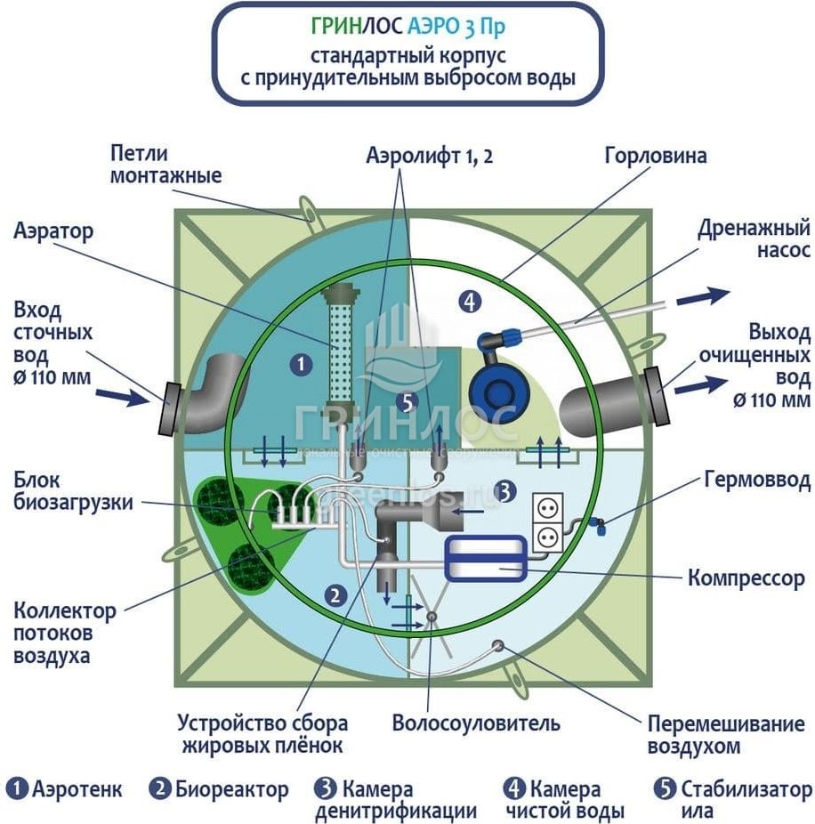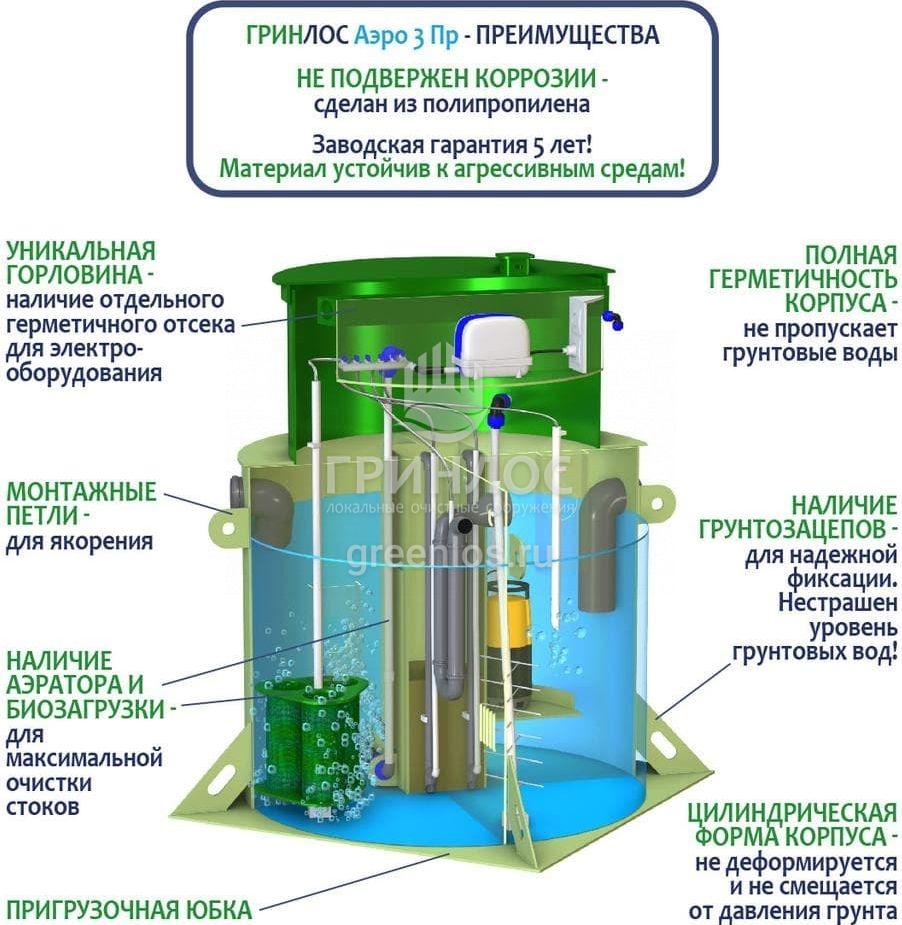 Отличительными особенностями септика ГРИНЛОС Аэро 3 Пр являются: