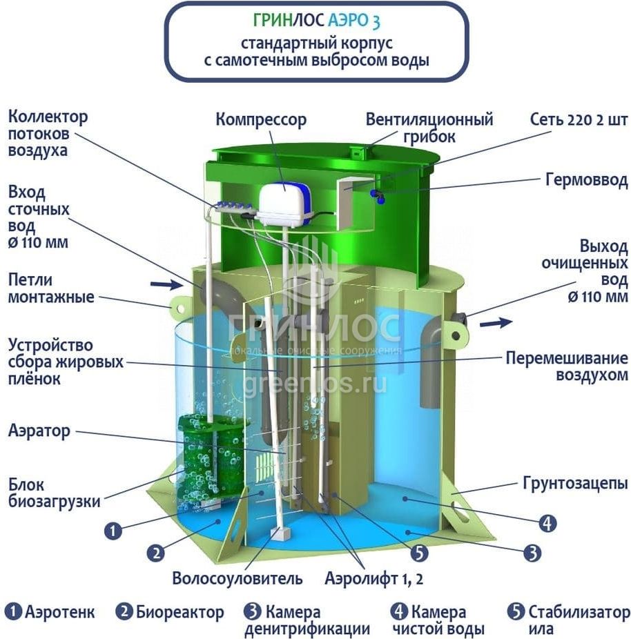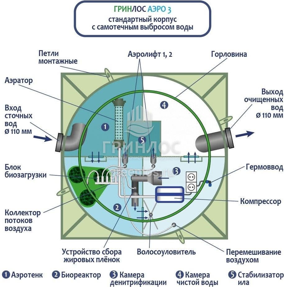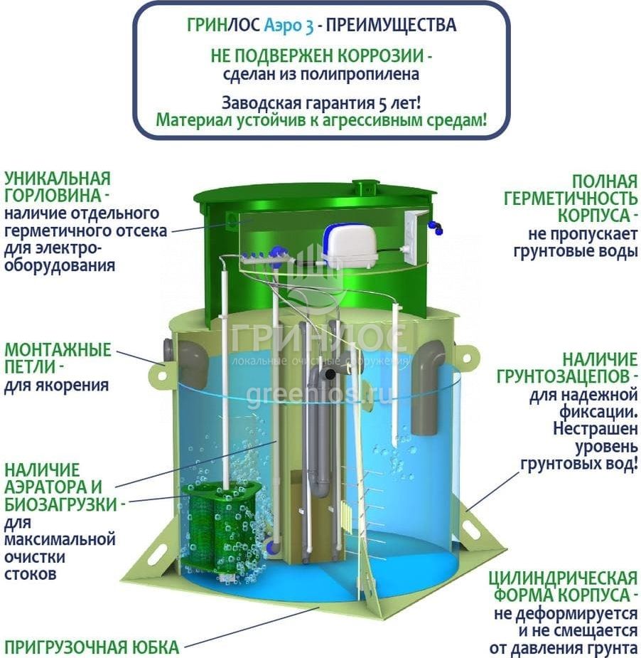 Отличительными особенностями септика ГРИНЛОС Аэро 3 являются: