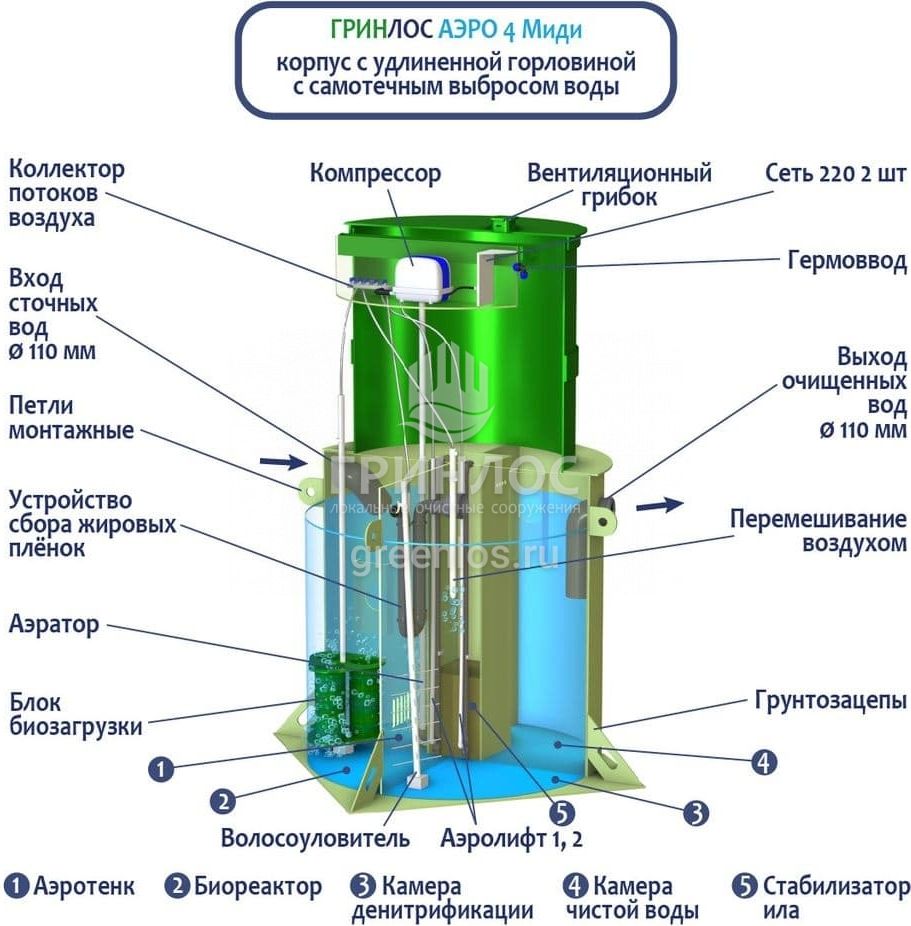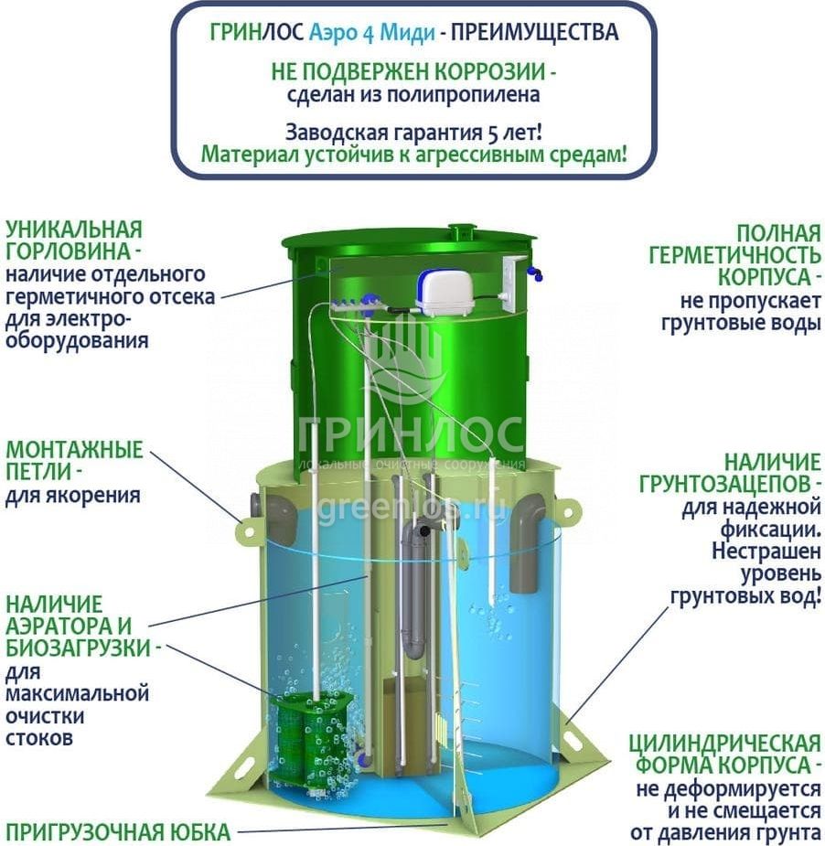 Модификации септика ГРИНЛОС Аэро 4 Миди