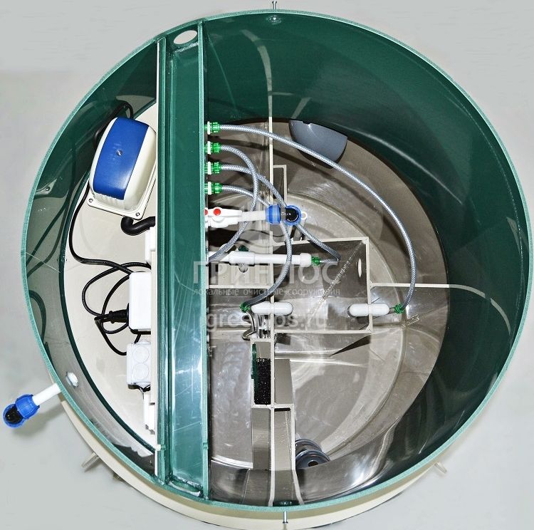 Станция ГРИНЛОС Аэро 4 сконструирована таким образом, что все камеры, в которых происходит аэрация, разделение и осветление стоков объединены в одном корпусе цилиндрической или овальной формы.