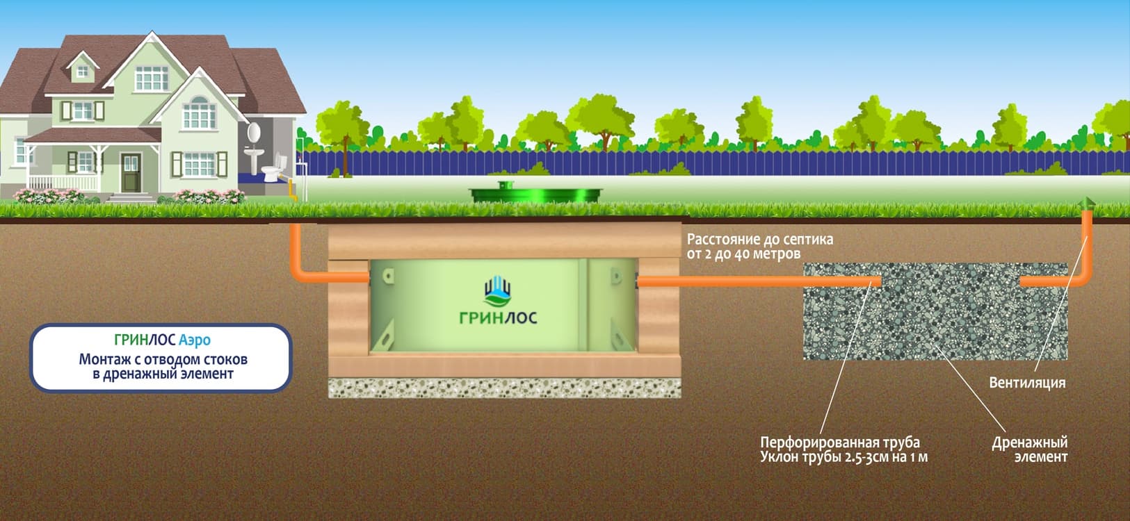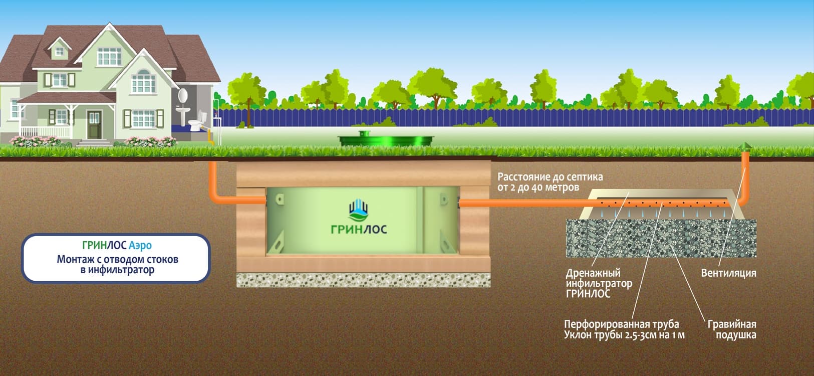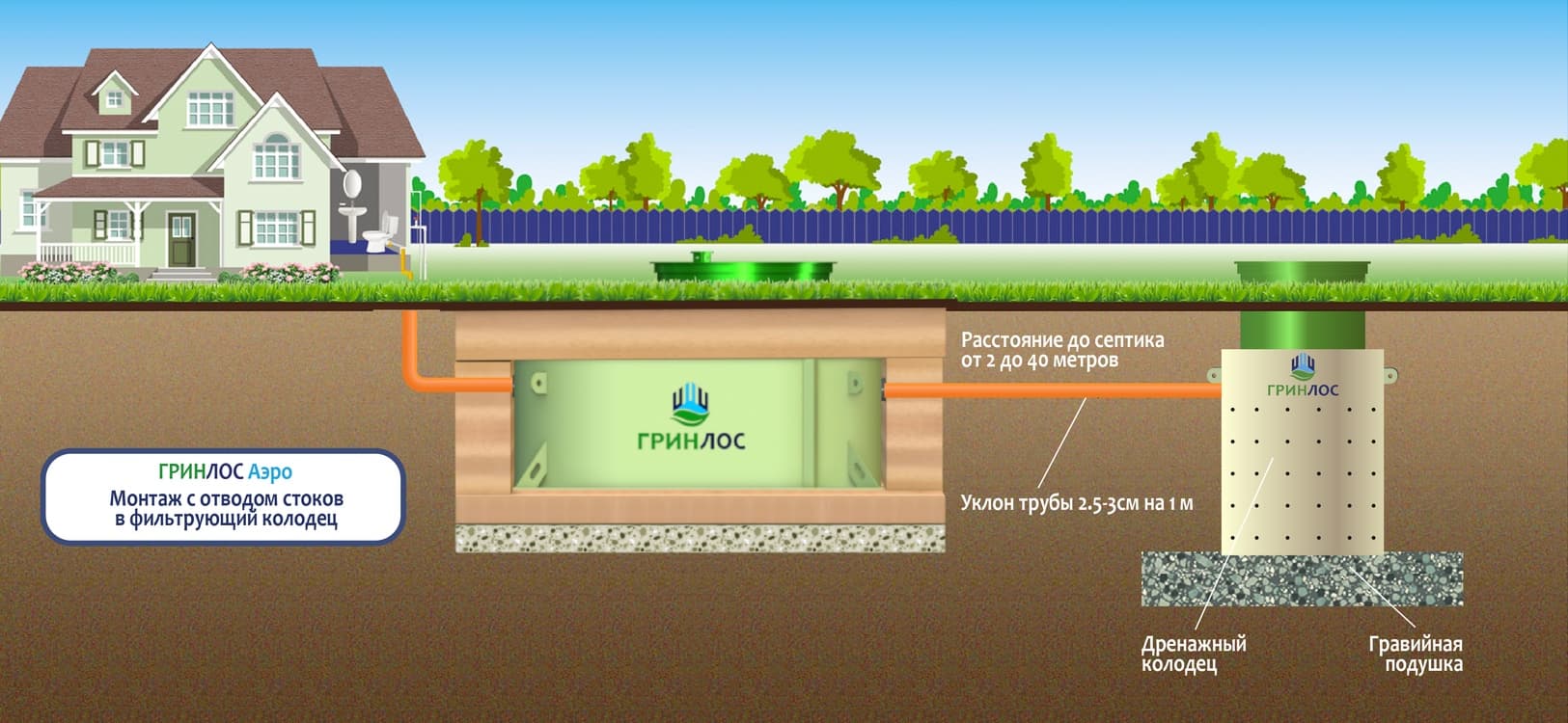 Монтаж септика ГРИНЛОС Аэро 4