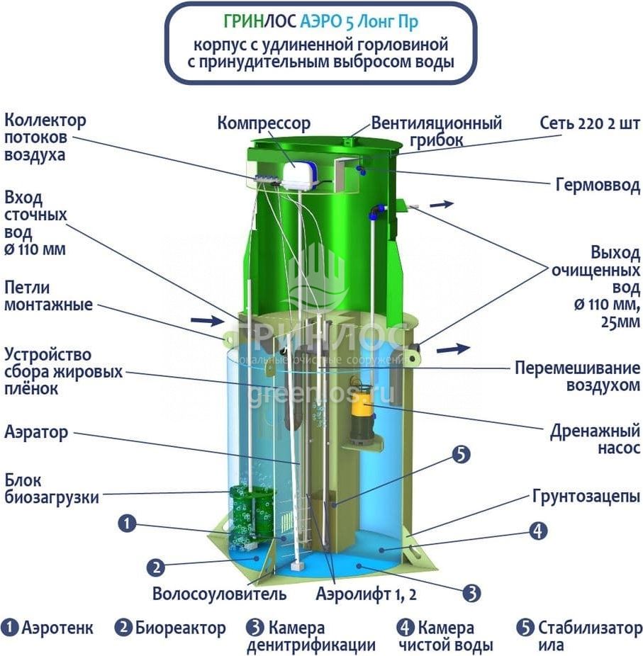 Модификации септика ГРИНЛОС Аэро 5 Пр Лонг