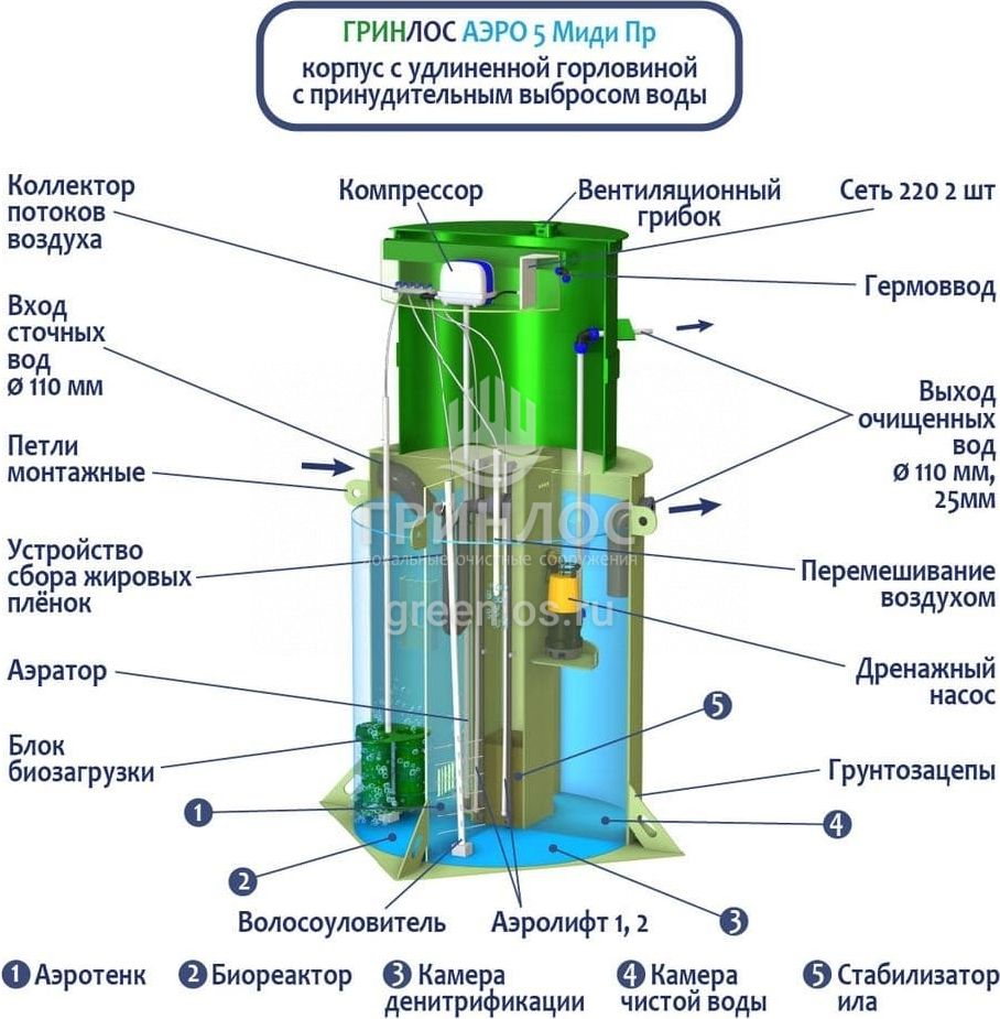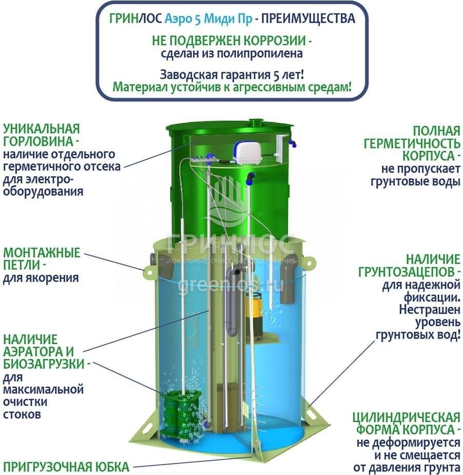 Модификации септика ГРИНЛОС Аэро 5 Пр Миди