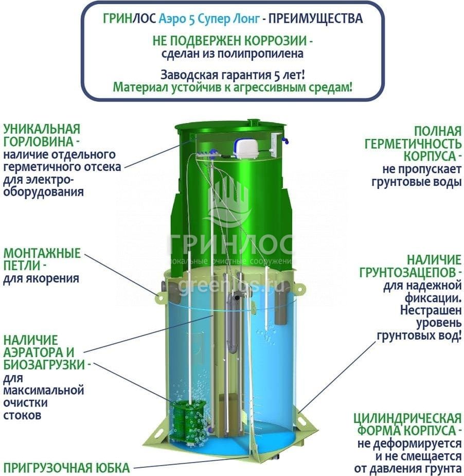 Модификации септика ГРИНЛОС Аэро 5 Супер Лонг