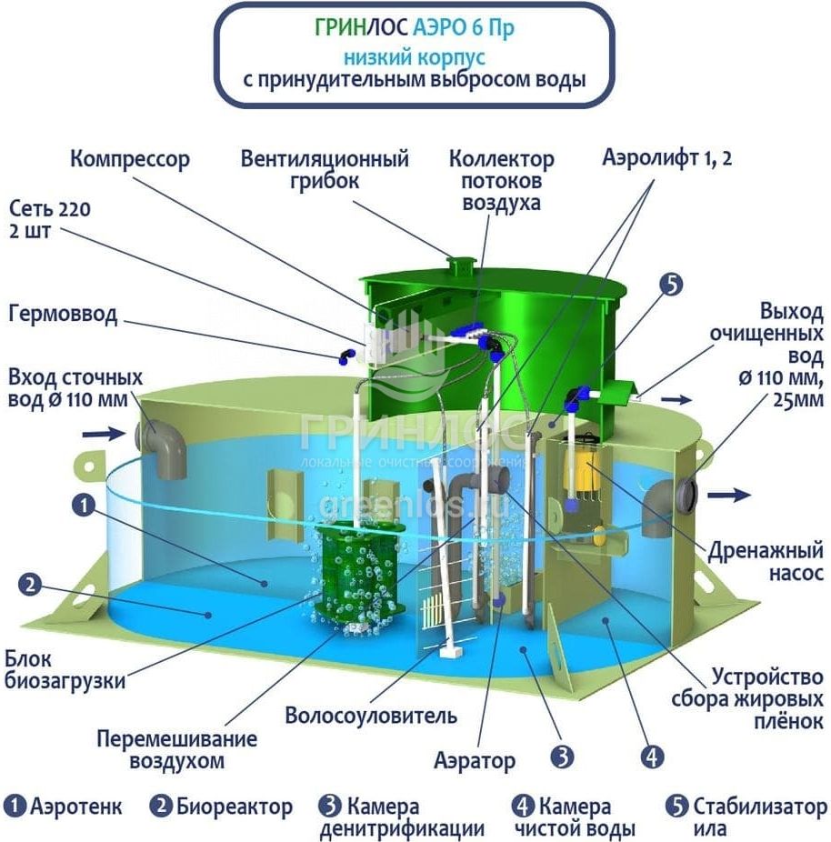 Модификации септика ГРИНЛОС Аэро 6 низкий корпус Пр