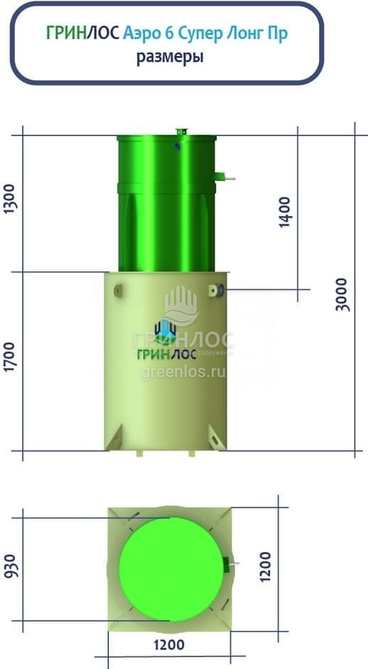 ГРИНЛОС Аэро 6 Пр Супер Лонг – это станция биологической очистки сточных вод аэрационного типа. Максимальный залповый сброс в септик равен 540 л, а производительность станции равна 1.2 м3/сутки, что рассчитано на обслуживание 6 условных пользователей.