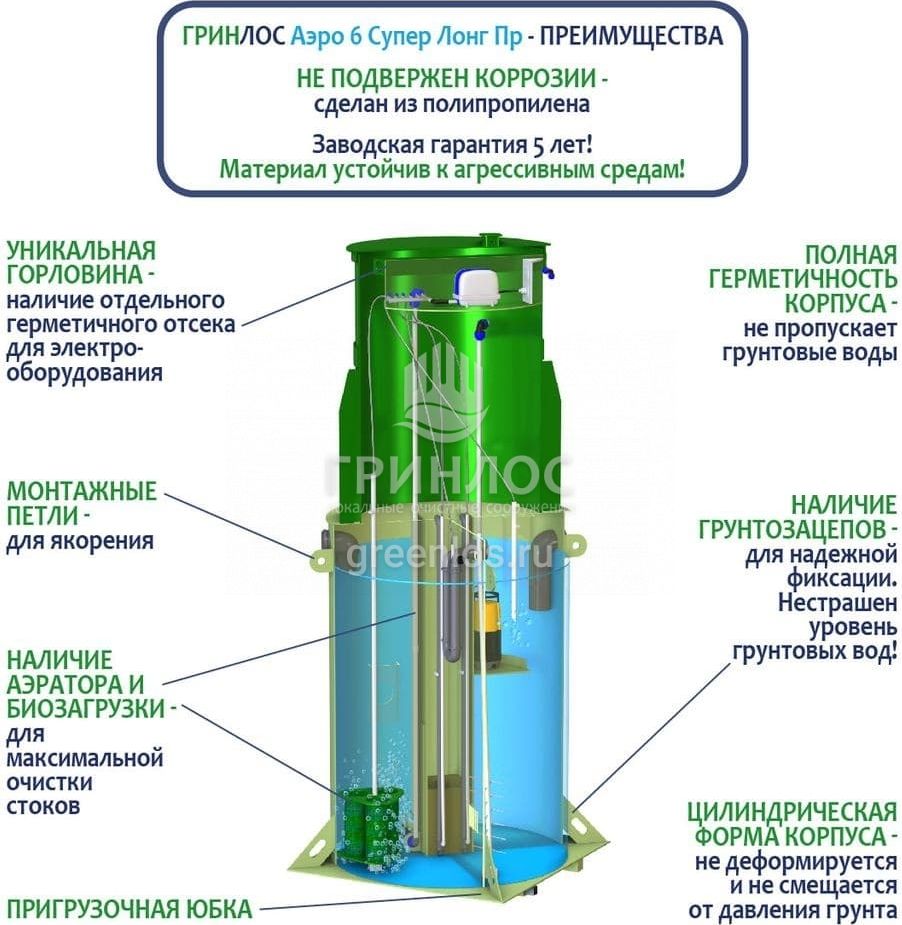 Модификации септика ГРИНЛОС Аэро 6 Пр Супер Лонг