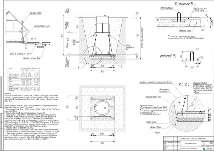 Целесообразно доверить выбор и монтаж оборудования специализированной компании. Перед непосредственным монтажом Оборудования специалисты осуществляют подготовку котлована. Его размеры определяются конструктивными особенностями выбранной модели оборудования. Ознакомиться с данными параметрами можно в приложении к ПС. По боковым стенкам корпуса должно быть сохранено свободное расстояние до грунта не менее 250 мм. Дно котлована нуждается в более тщательной подготовке. Его подвергают выравниванию с последующей засыпкой слоем песка, обладающим толщиной в пределах 10-15 см. Пазухи котлована подвергают обратной засыпке при помощи песка, который послойно поливают водой. Прежде чем приступить к аналогичным работам, емкость оборудования на четверть заполняют водой. Впоследствии количество воды внутри емкости увеличивают соразмерно уровню засыпки песком наружных стенок. Каждые 200 мм песка подвергаются ручному уплотнению.