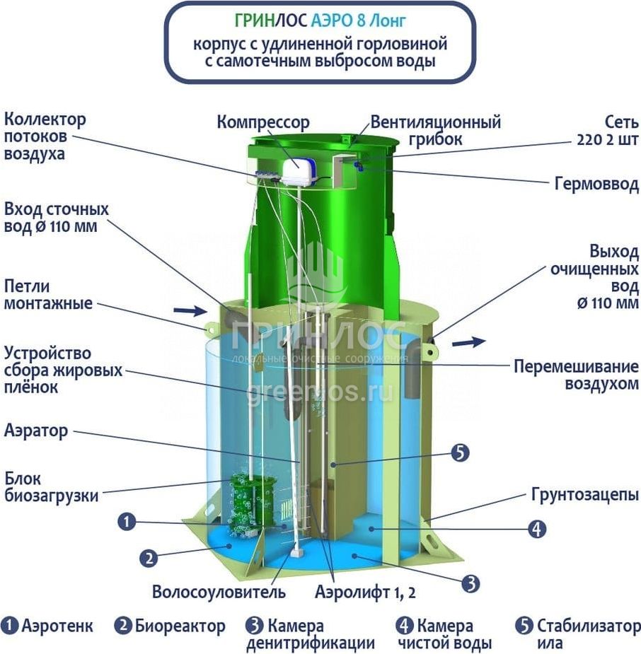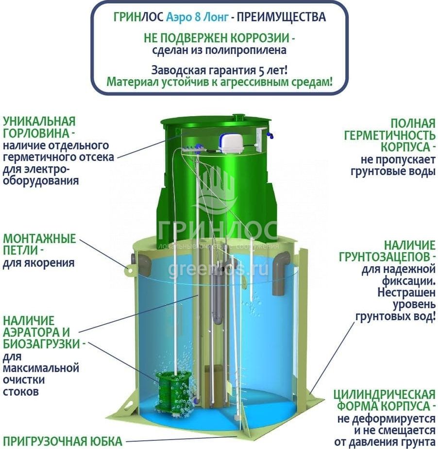 Модификации септика ГРИНЛОС Аэро 8 Лонг