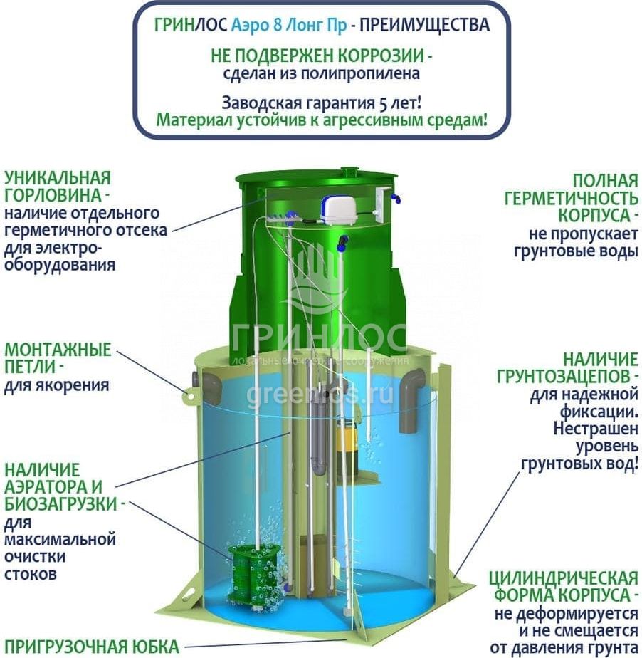 Модификации септика ГРИНЛОС Аэро 8 Пр Лонг