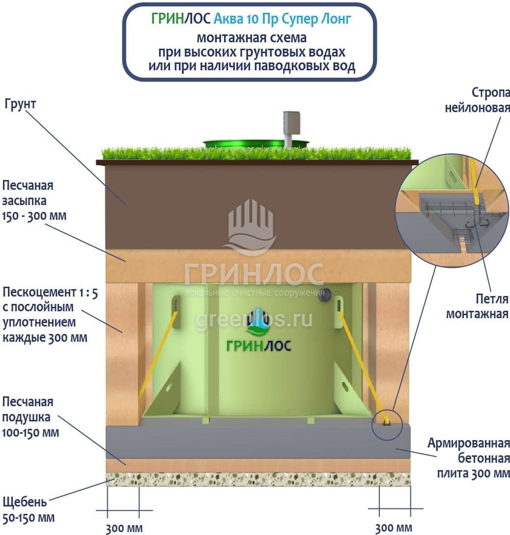 Станции очистки ГРИНЛОС обладают надежными грунтозацепами, действительно предотвращающими всплытие оборудования на обводненных участках.