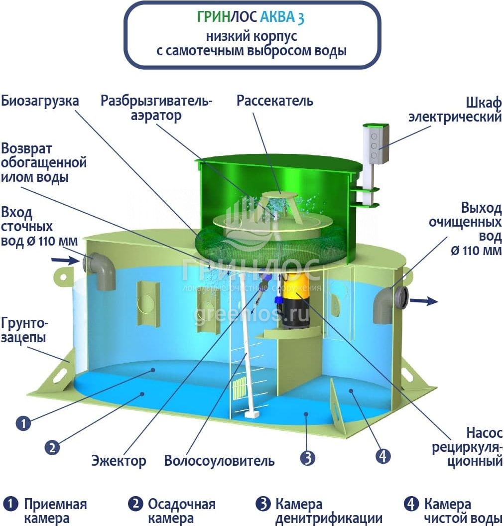 Отличительными особенностями септика ГРИНЛОС Аква 3 низкий корпус являются: