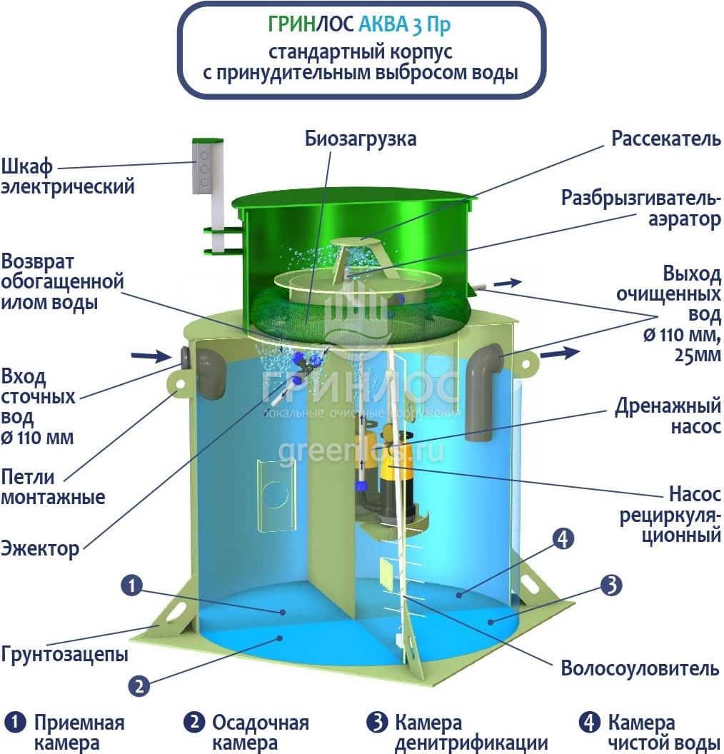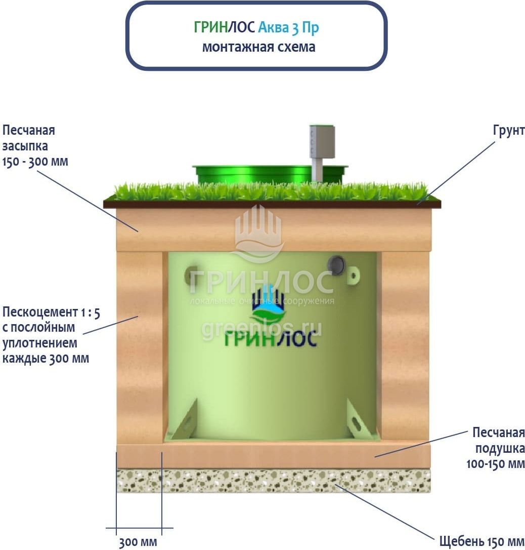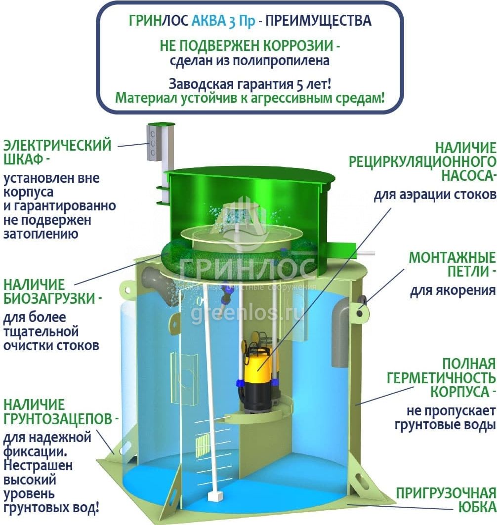 Отличительными особенностями септика ГРИНЛОС Аква 3 Пр являются: