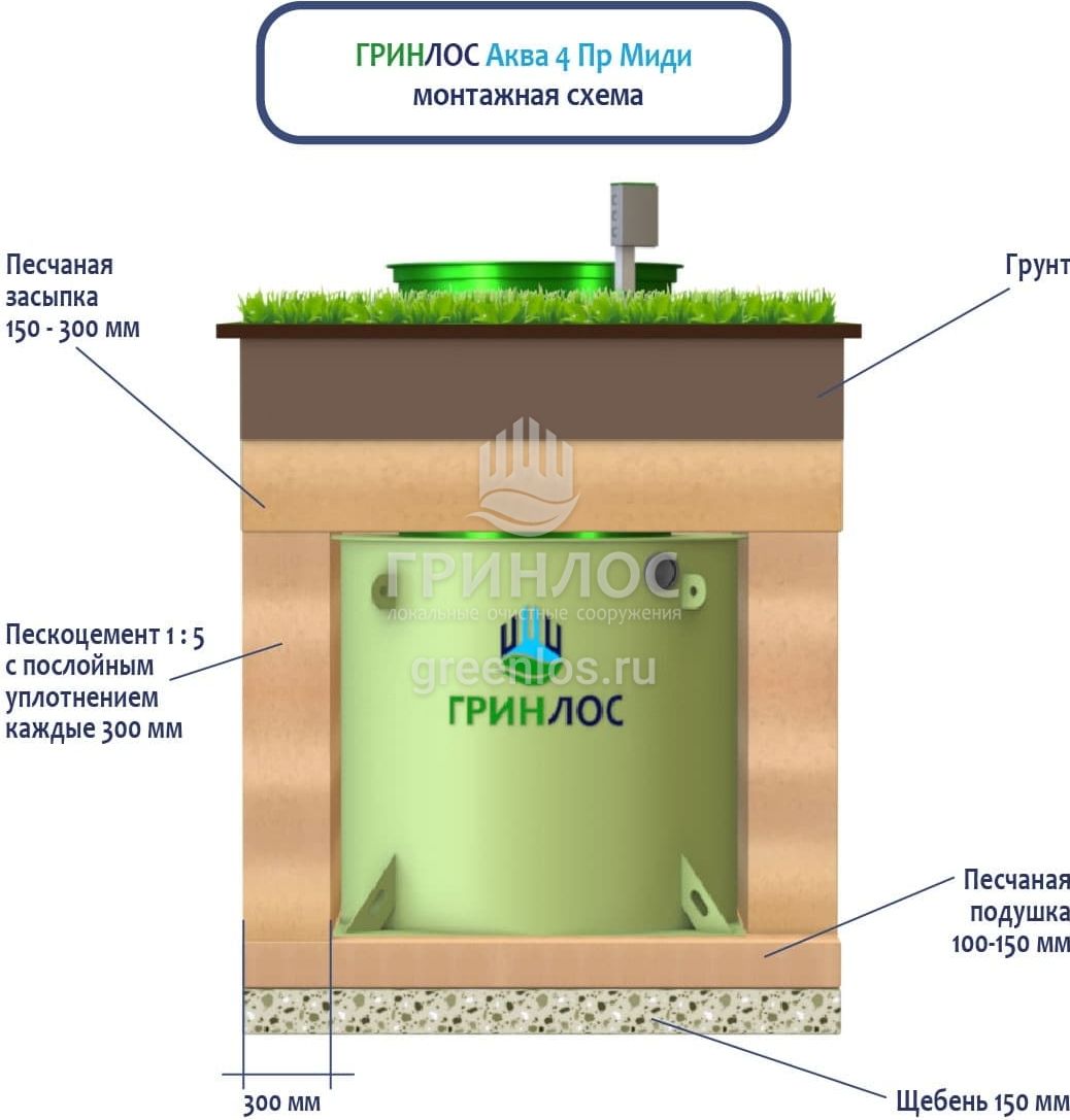 Модификации септика ГРИНЛОС Аква 4 Пр Миди
