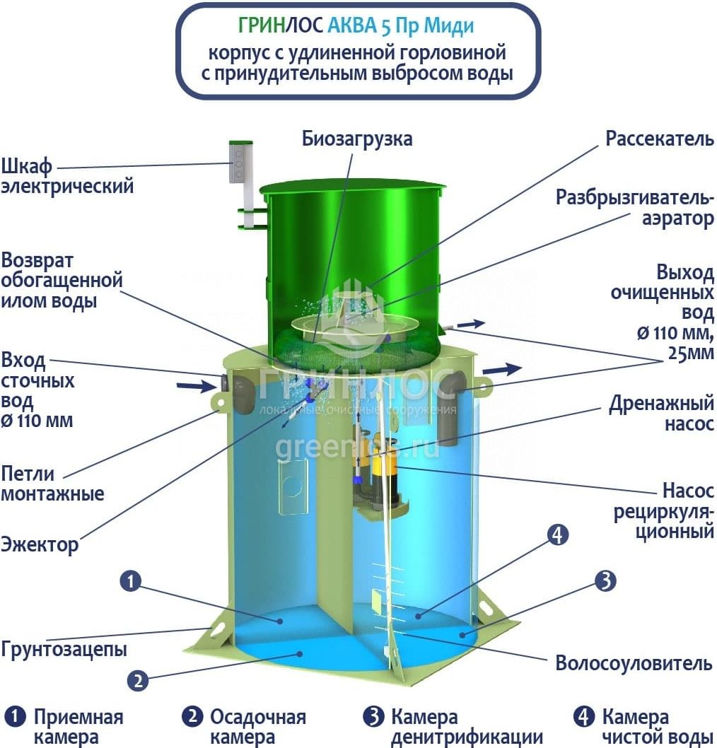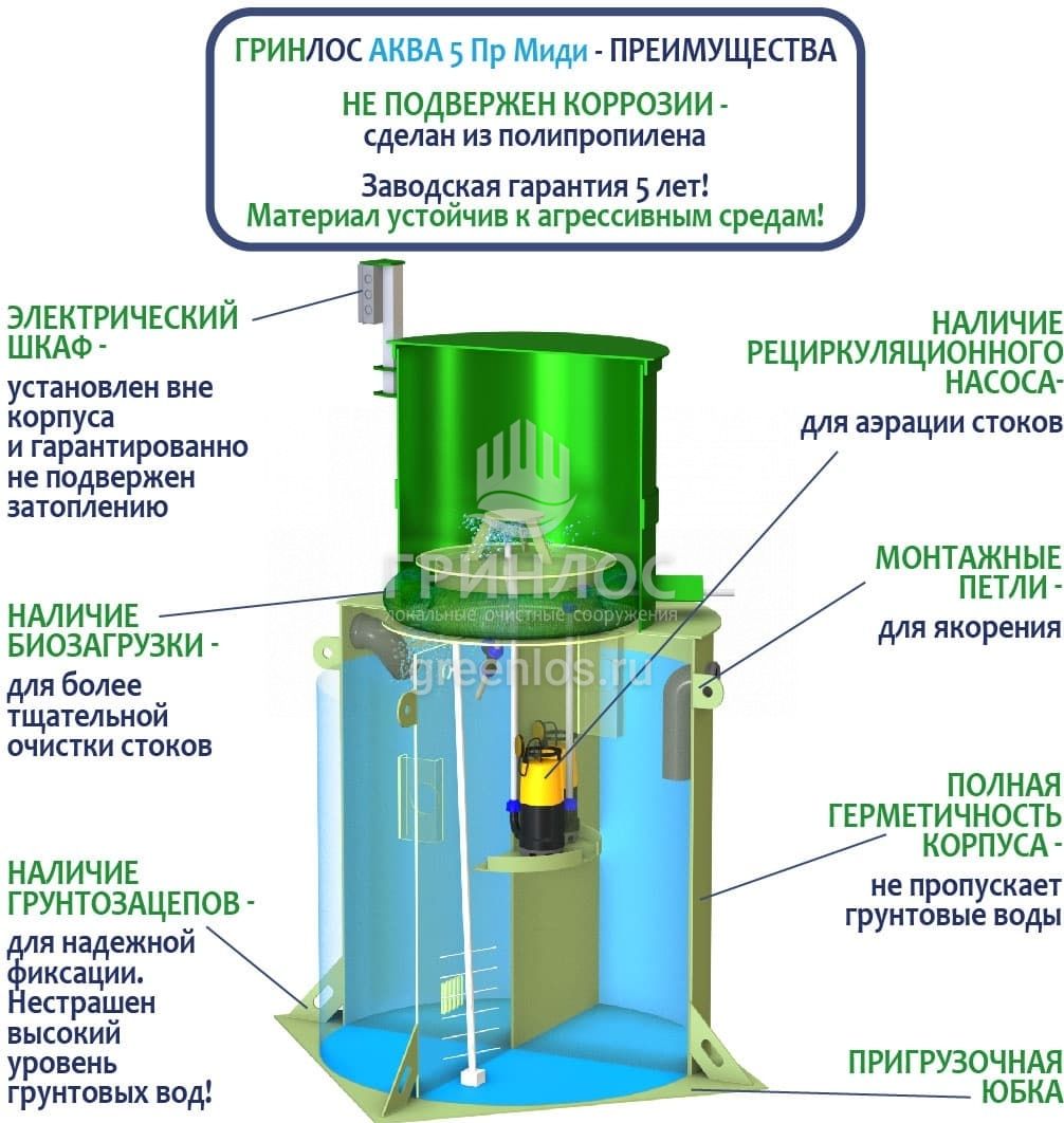 Модификации септика ГРИНЛОС Аква 5 Миди