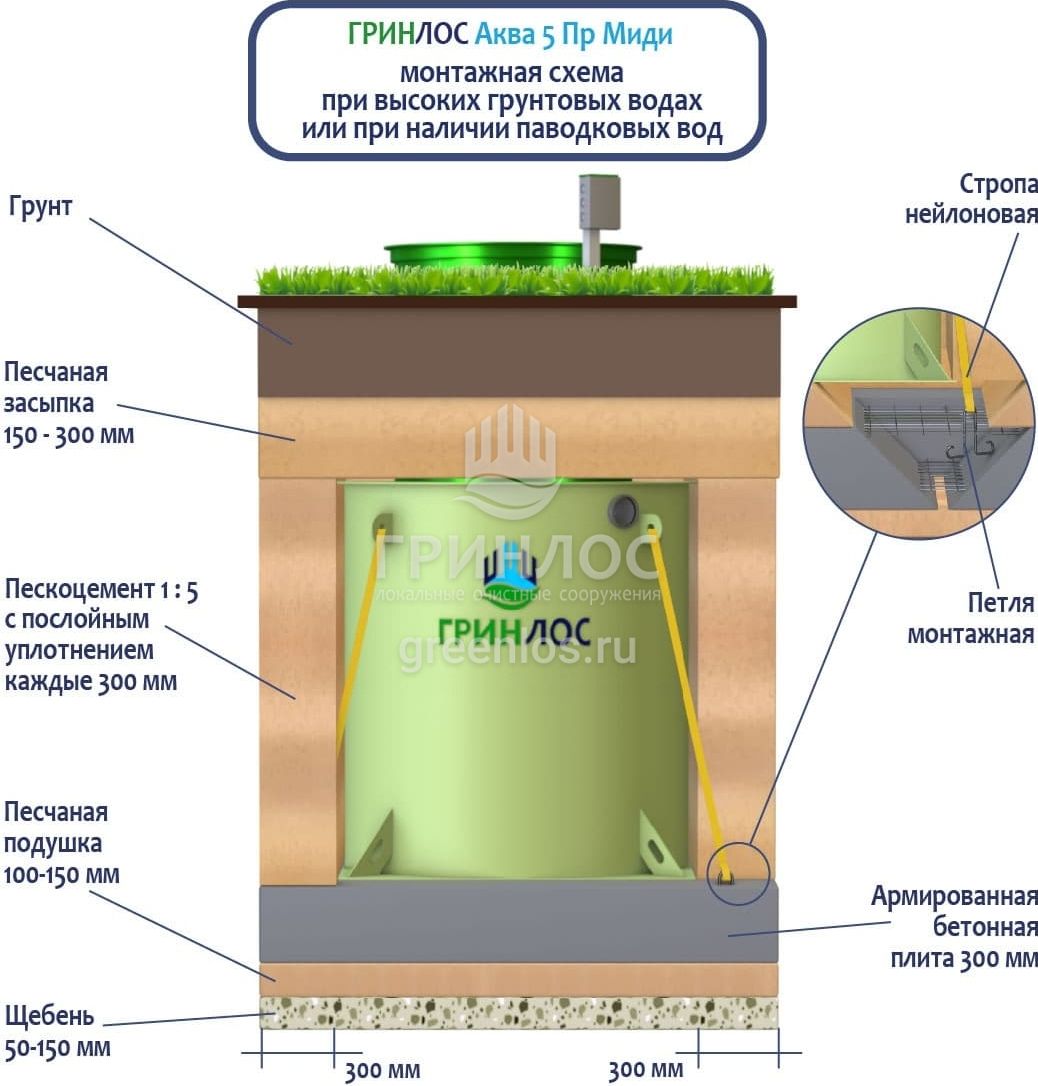 Монтаж септика ГРИНЛОС Аква 5 Миди