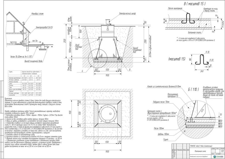 Целесообразно доверить выбор и монтаж оборудования специализированной компании. Перед непосредственным монтажом Оборудования специалисты осуществляют подготовку котлована. Его размеры определяются конструктивными особенностями выбранной модели оборудования. Ознакомиться с данными параметрами можно в приложении к ПС. По боковым стенкам корпуса должно быть сохранено свободное расстояние до грунта не менее 250 мм. Дно котлована нуждается в более тщательной подготовке. Его подвергают выравниванию с последующей засыпкой слоем песка, обладающим толщиной в пределах 10-15 см. Пазухи котлована подвергают обратной засыпке при помощи песка, который послойно поливают водой. Прежде чем приступить к аналогичным работам, емкость оборудования на четверть заполняют водой. Впоследствии количество воды внутри емкости увеличивают соразмерно уровню засыпки песком наружных стенок. Каждые 200 мм песка подвергаются ручному уплотнению.