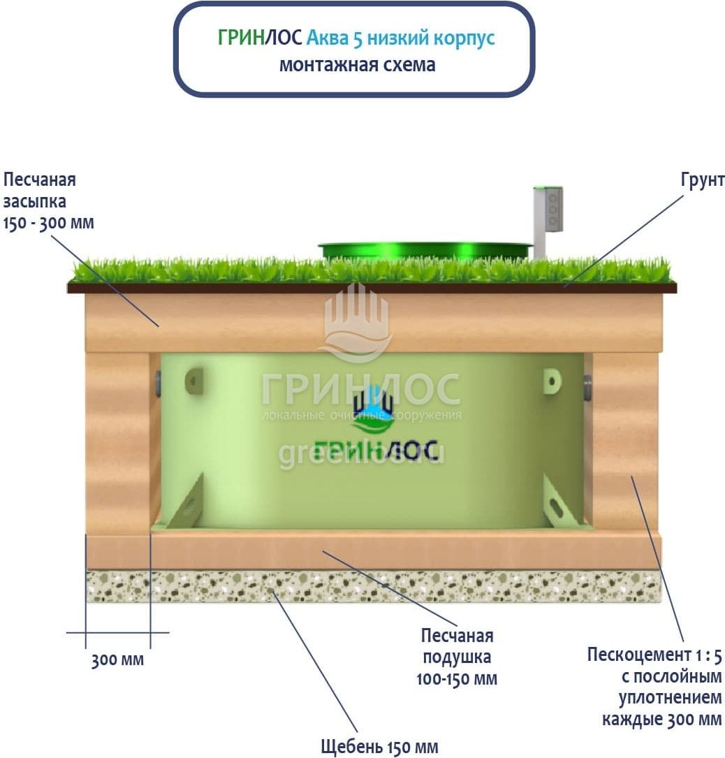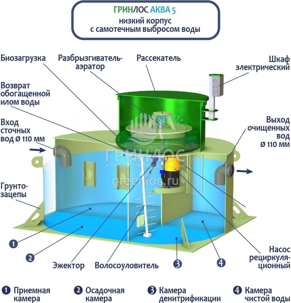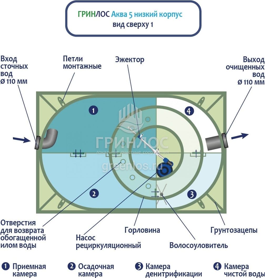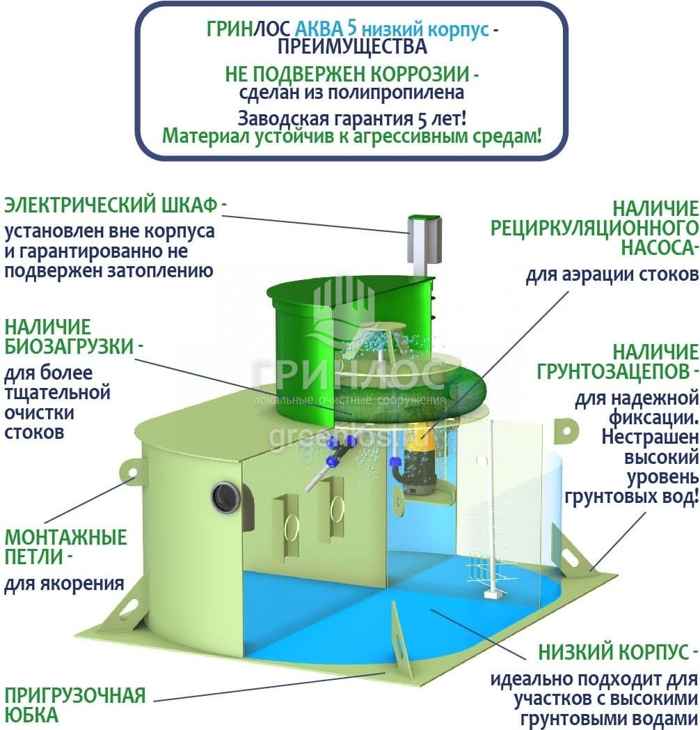 Отличительными особенностями септика ГРИНЛОС Аква 5 низкий корпус являются: