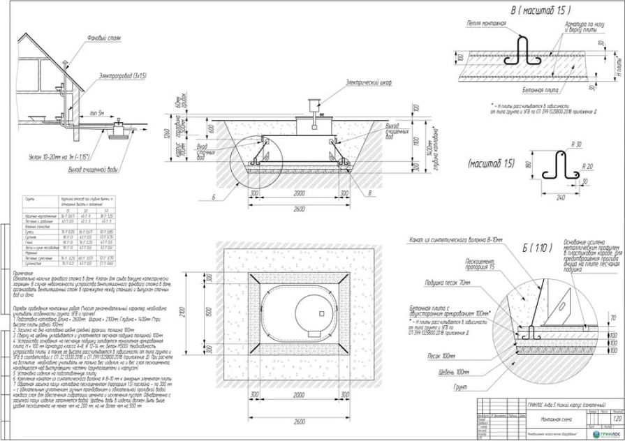 Целесообразно доверить выбор и монтаж оборудования специализированной компании. Перед непосредственным монтажом Оборудования специалисты осуществляют подготовку котлована. Его размеры определяются конструктивными особенностями выбранной модели оборудования. Ознакомиться с данными параметрами можно в приложении к ПС. По боковым стенкам корпуса должно быть сохранено свободное расстояние до грунта не менее 250 мм. Дно котлована нуждается в более тщательной подготовке. Его подвергают выравниванию с последующей засыпкой слоем песка, обладающим толщиной в пределах 10-15 см. Пазухи котлована подвергают обратной засыпке при помощи песка, который послойно поливают водой. Прежде чем приступить к аналогичным работам, емкость оборудования на четверть заполняют водой. Впоследствии количество воды внутри емкости увеличивают соразмерно уровню засыпки песком наружных стенок. Каждые 200 мм песка подвергаются ручному уплотнению.