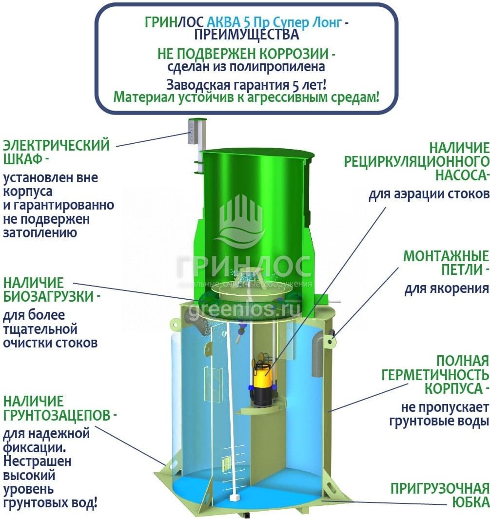 Модификации септика ГРИНЛОС Аква 5 Пр Супер Лонг