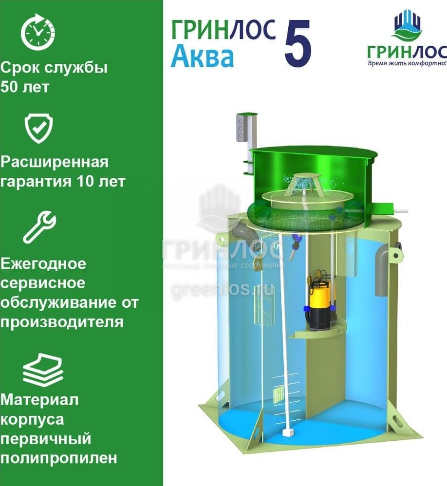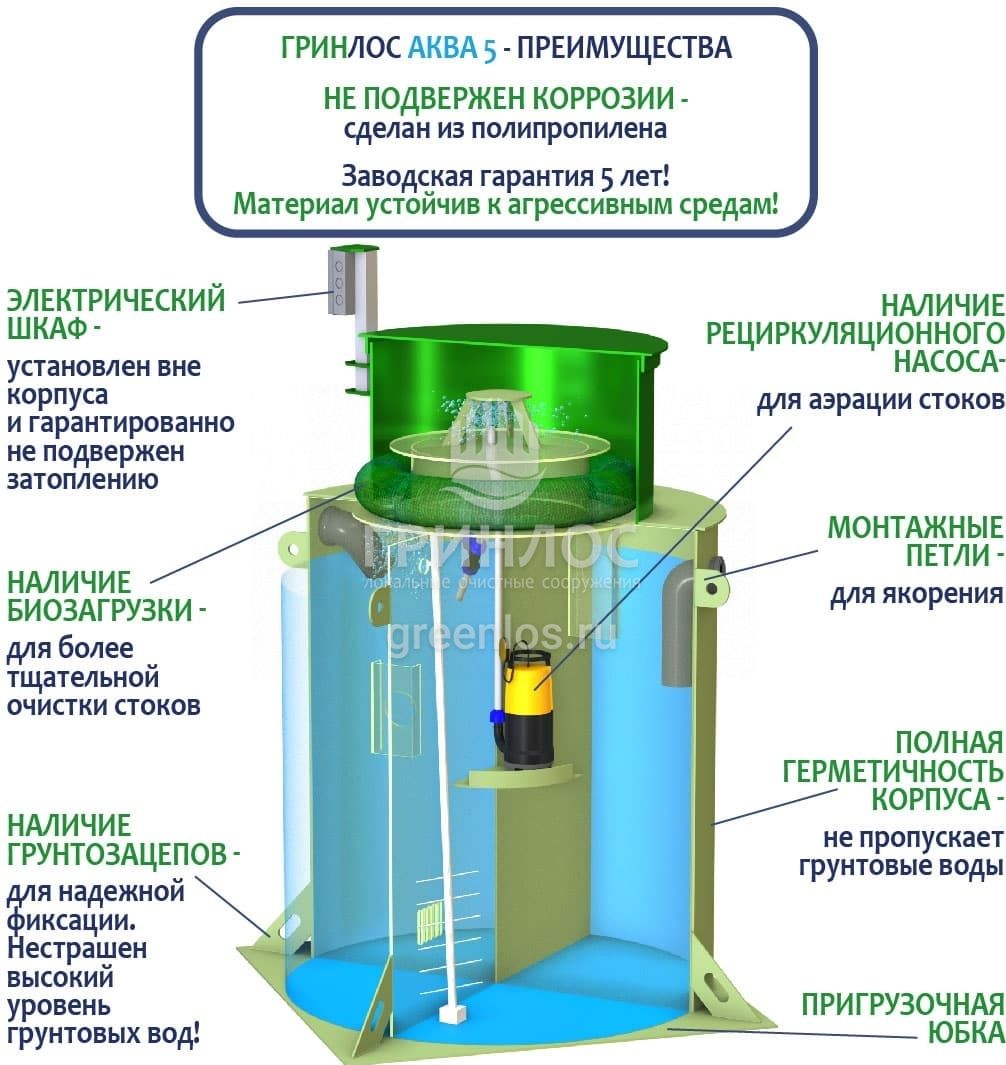 Отличительными особенностями септика ГРИНЛОС Аква 5 являются: