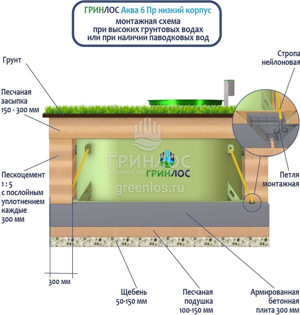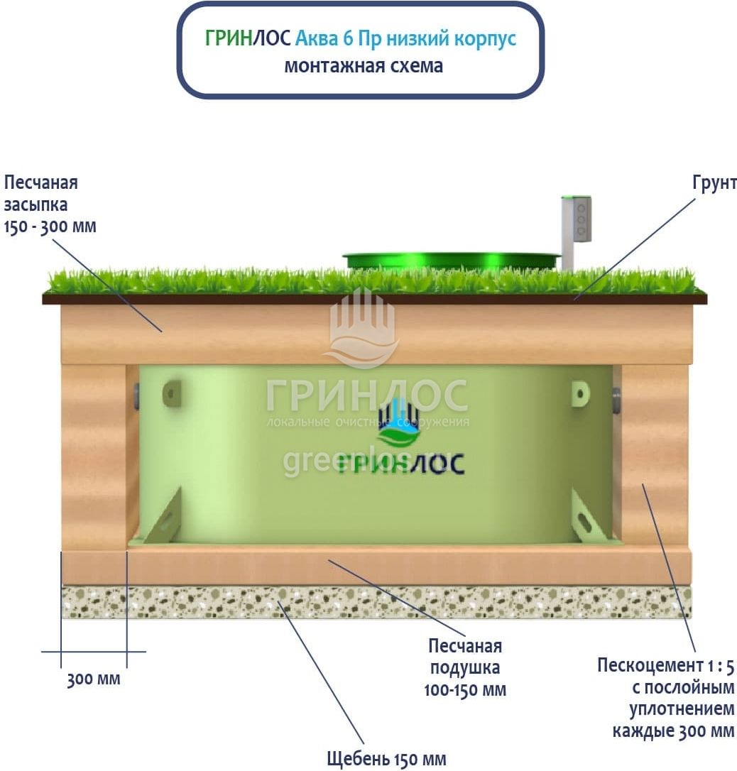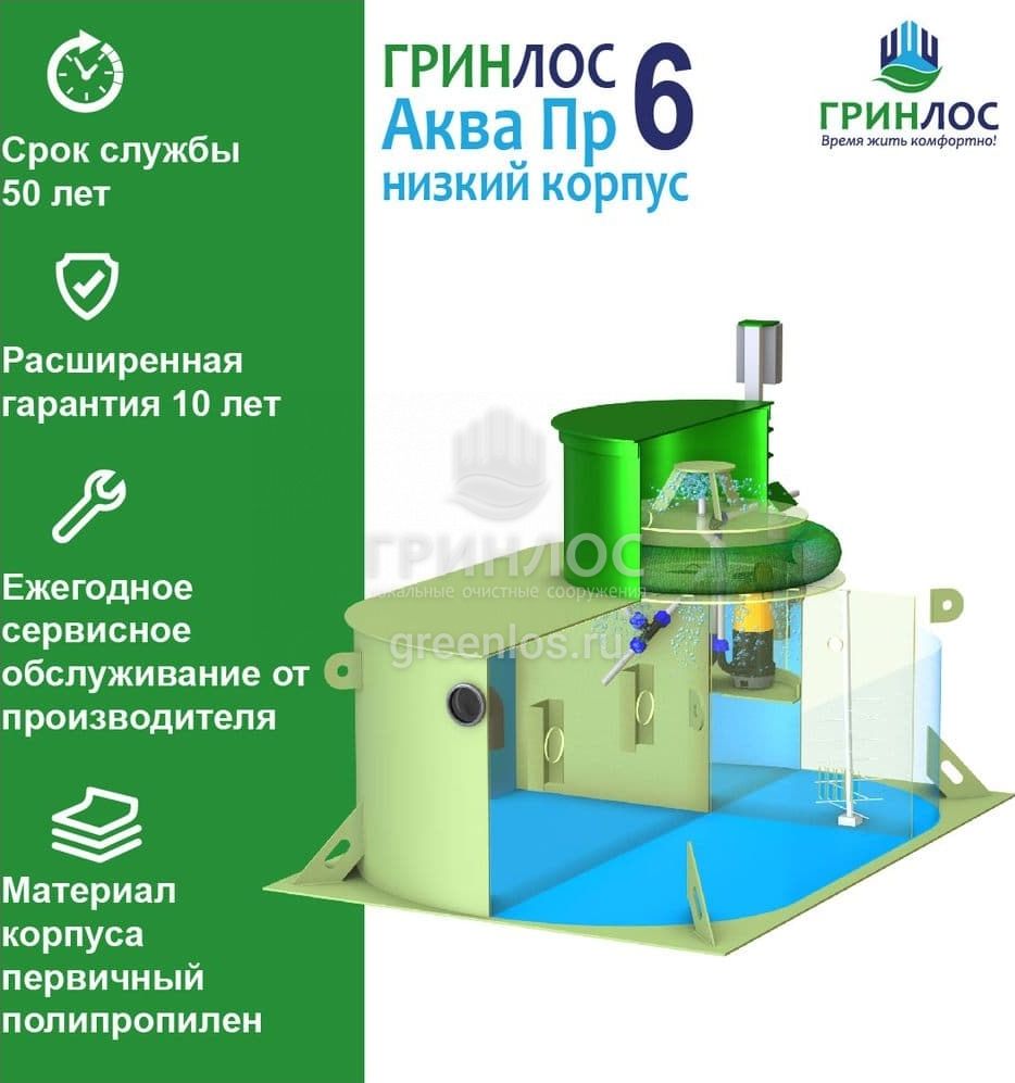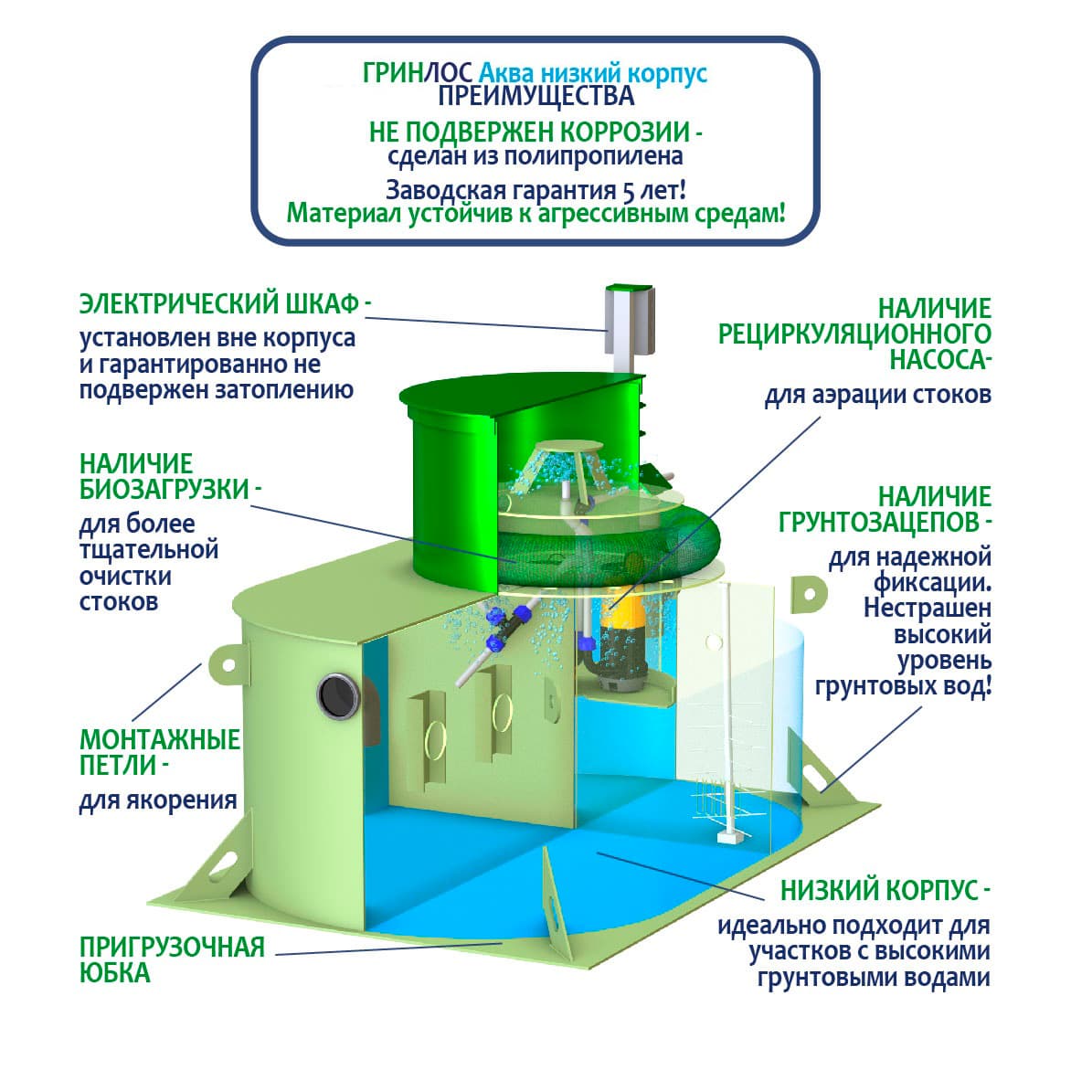 Отличительными особенностями септика ГРИНЛОС Аква 6 низкий корпус Пр являются: